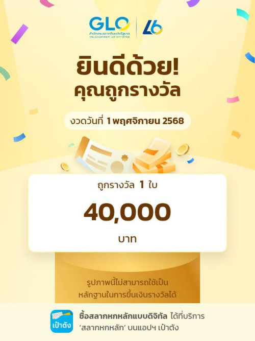พอกดเข้าไปในแอพเป๋าตังจะขึ้นว่า ยินดีด้วยคุณถูกรางวัล เลข... ตัว