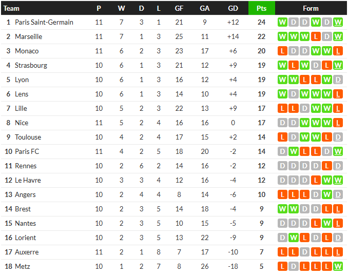 สรุปผล ลีกเอิง เสาร์ที่ 1 พฤศจิกายน 2025