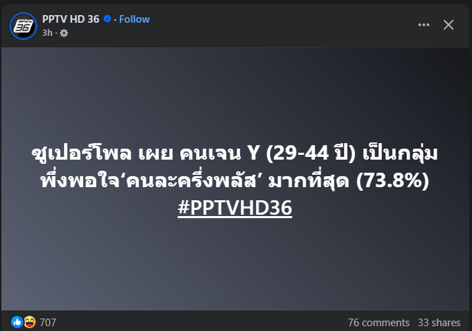 [RE: ซูเปอร์โพล เผย คนเจน Y (29-44 ปี) เป็นกลุ่ม พึ่งพอใจ‘คนละครึ่งพลัส’ มากที่สุด]