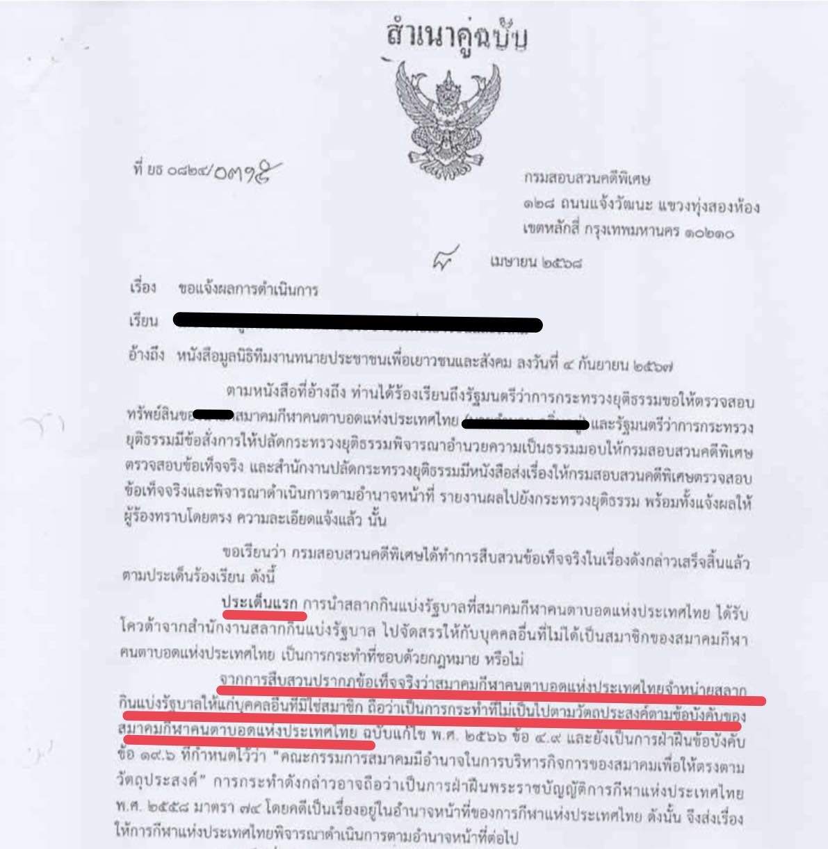 [RE: เปิดหลักฐานแรก ปม ‘โควต้าหวย’ สมาคมกีฬาคนตาบอดฯ]