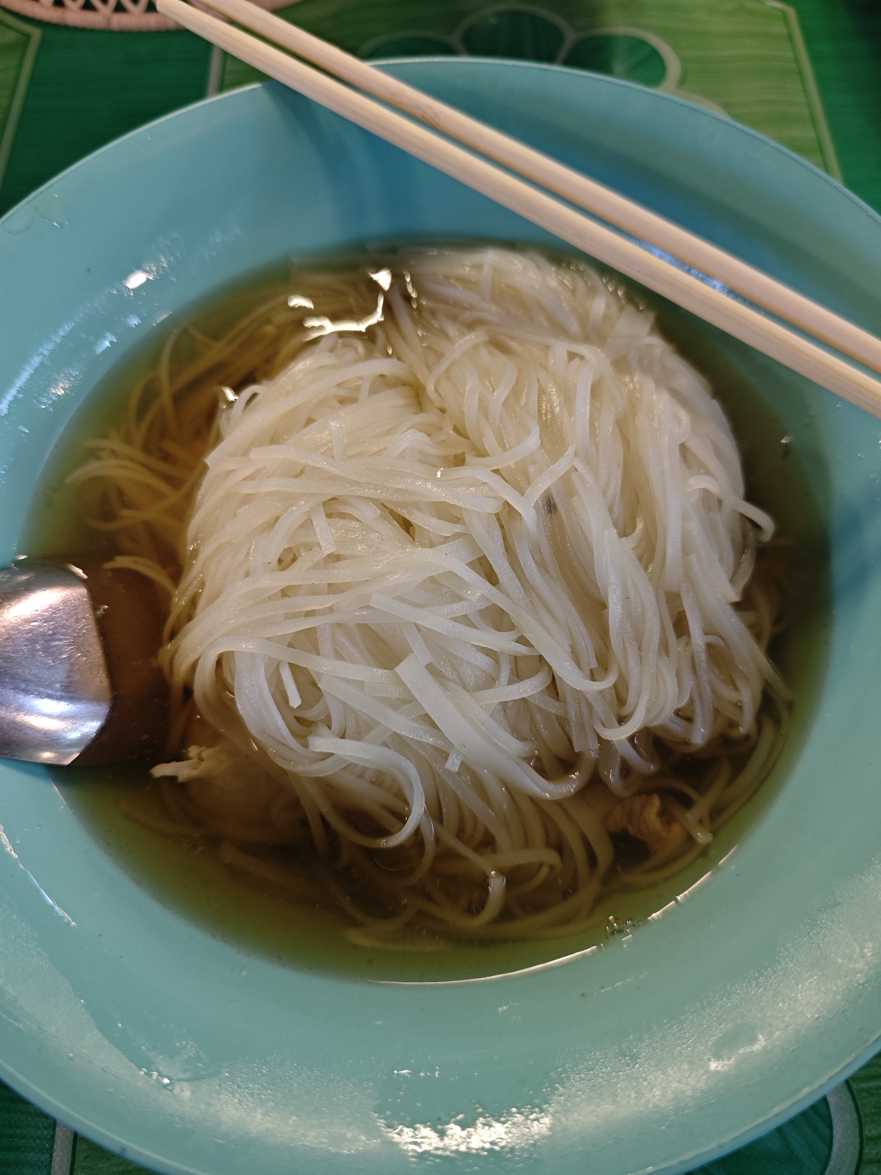 ร้านแรกไม่มีคนละครึ่งครับ กินเตี๋ยวเป็นจานเรียกน้ำย่อยก่อนครับ เส้นเล็กน้ำใสหมูชิ้นครับ พิเศษชามละ 40 บาทครับ