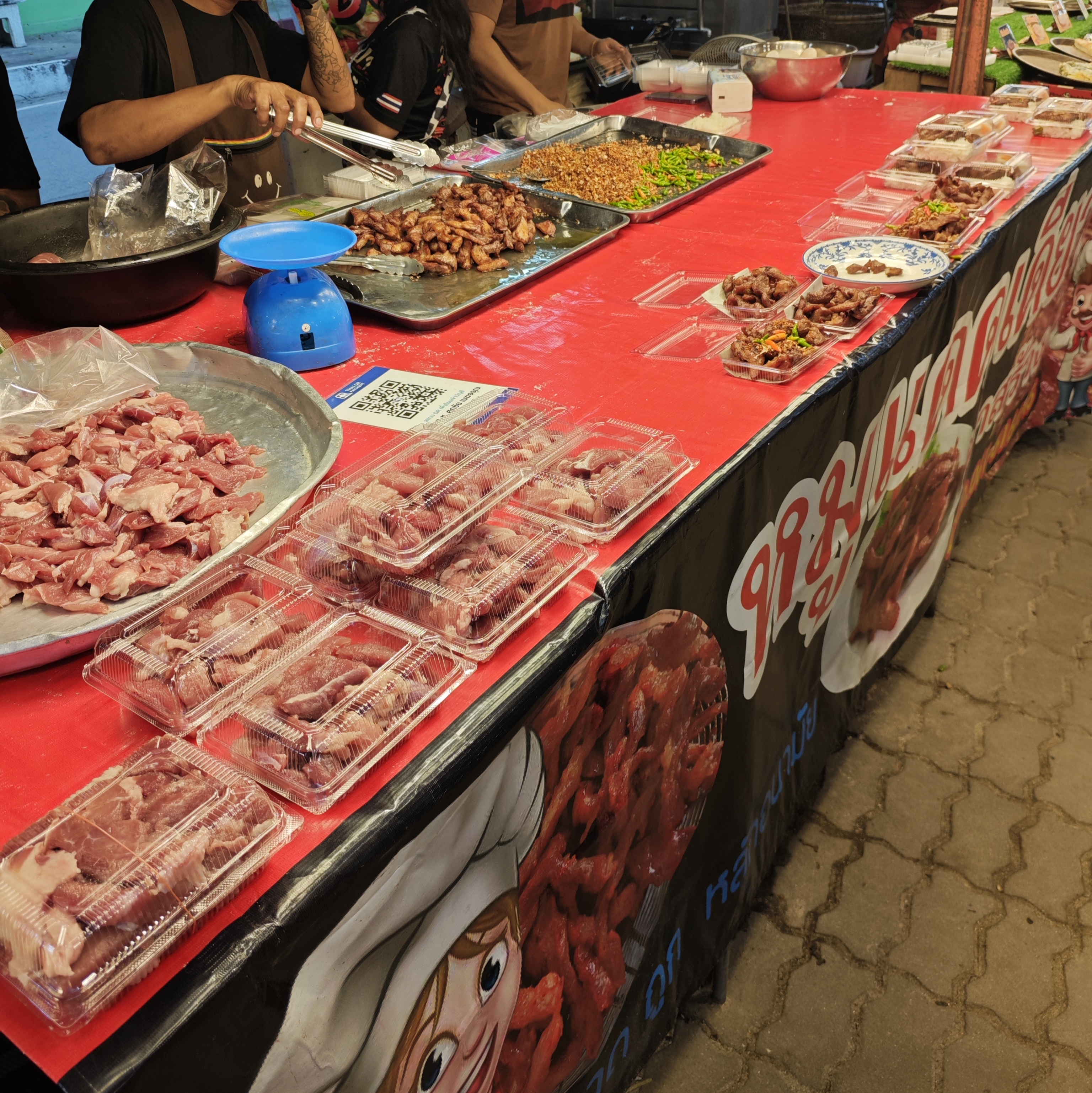 ต่อไปเมนคอร์ดและของทานเล่นครับ 2 ร้านนี้มีคนละครึ่งครับ ข้าวหมูทอดแดดเดียวกับปลาหมึกย่างครับ
