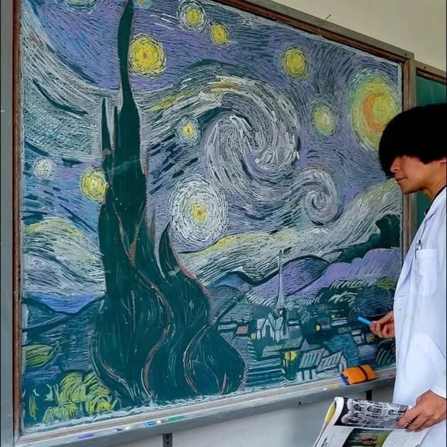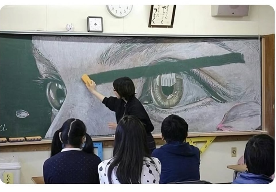 ในโรงเรียนมัธยมปลายแห่งหนึ่งที่ญี่ปุ่น ครูฮิโรทากะ ฮามาซากิ (Hirotaka Hamasaki) เปลี่ยนกระดานดำธรรมดาให้กลายเป็นผลงานชิ้นเอก ผลงานแต่ละชิ้นของเขาถูกวาดอย่างงดงามและเต็มไปด้วยรายละเอียดอันน่าทึ่ง โดยใช้เพียงชอล์ก 7 สี ซึ่งภาพบางภาพต้องใช้เวลาวาดนานหลายชั่วโมง