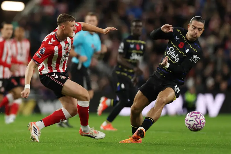 ซันเดอร์แลนด์ เสียบอลหน้าบ้านโดนเอฟเวอร์ตันตอบโต้กลับ บอลไปจบที่กรีลิช ครอสบอลไปเสาสอง หลุดถึงบาร์รี่ ได้เข้าฮอตจ่อๆ คนเดียว ยิงหลุดกรอบเหลือเชื่อ