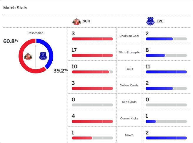 ทดเจ็บ 6 นาที ซันเดอร์แลนด์ก็ปิดงานไม่ลง แบ่งแต้มเอฟเวอร์ตัน 1-1