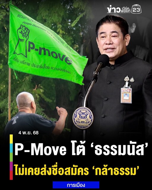 P-Move โต้ “ธรรมนัส” ไม่เคยส่งชื่อยื่นสมัคร "พรรคกล้าธรรม"