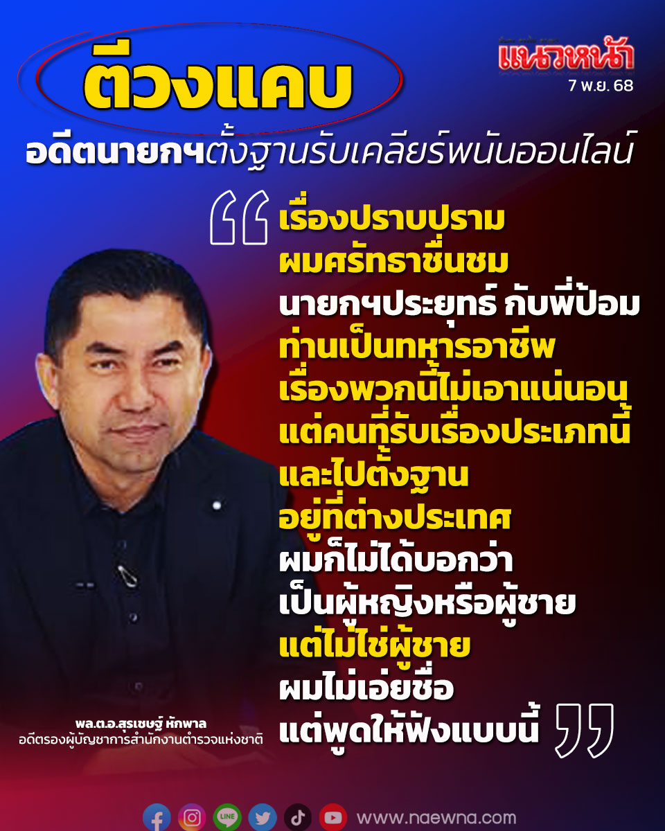 ไม่ใช่ผู้ชาย! บิ๊กโจ๊ก ตีวงแคบ แฉอดีตนายกฯ ตั้งฐานในต่างประเทศ รับเคลียร์พนันออนไลน์