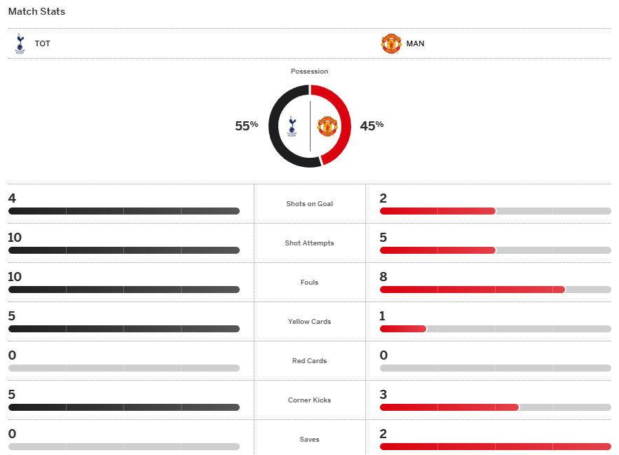 จบเกม แมนฯ ยูไนเต็ด ไล่เจ๊า สเปอร์ส สำเร็จ 2-2 ทำให้พวกเขาไม่แพ้ใครเพิ่มเป็น 5 เกมติดต่อกันแต่ก็พลาดโอกาสขึ้นรองฝูงโดยอยู่ที่ 7 มี 18 แต้มเท่ากับอีกหลายทีม