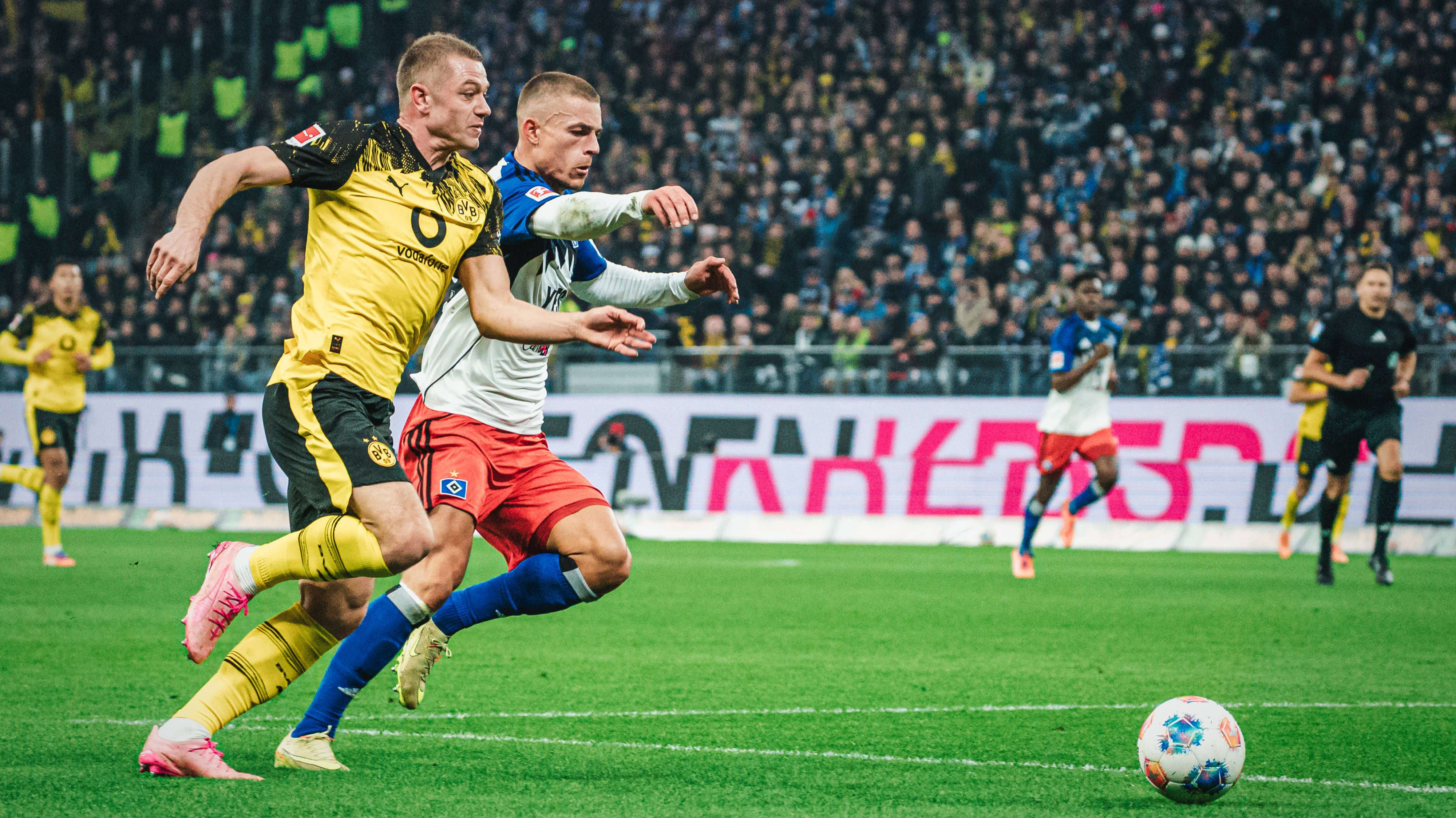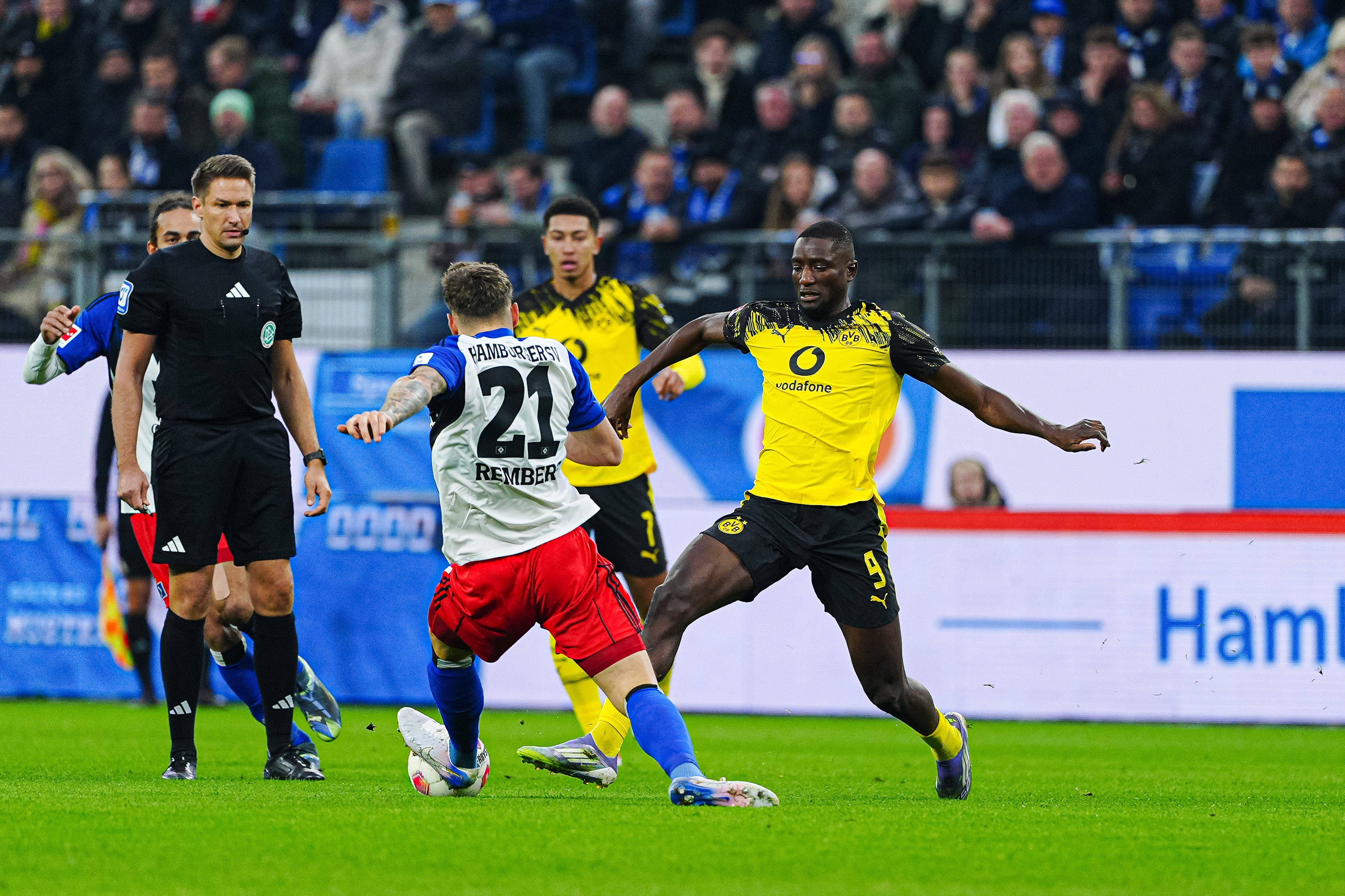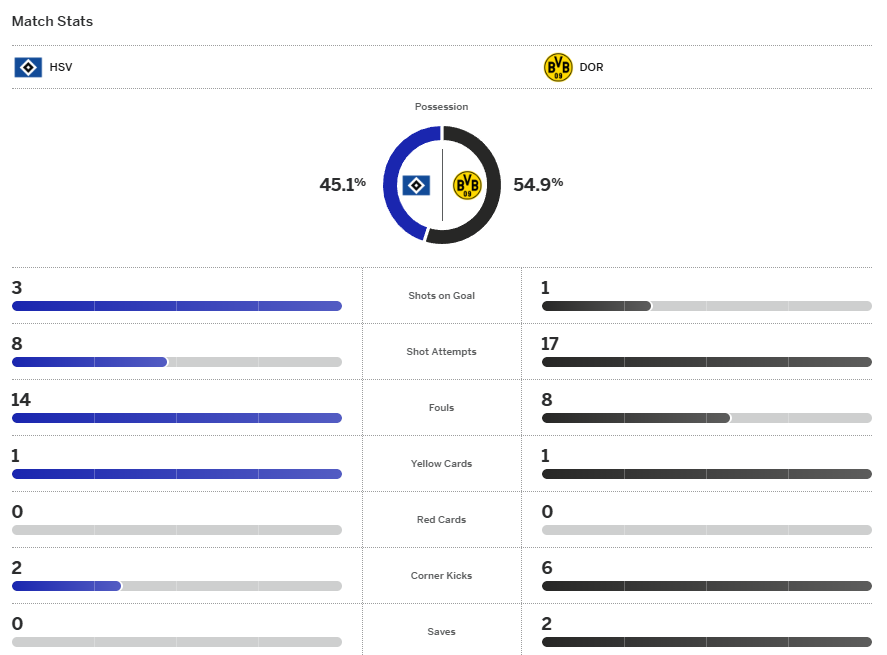 ฮัมบวร์ก มีโอกาสงามแต่ทำไม่ได้หลังจาก โลกองก้า ดักบอลได้หน้าเขตโทษของ ดอร์ทมุนด์ แล้วไหลให้ กลาทเซิล ได้ยิงแต่เบาเกินบอลกลิ้งไปโดน โคเบิล ทิ้งตัวรับไว้