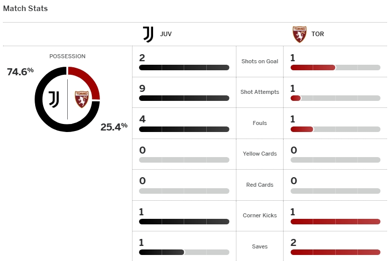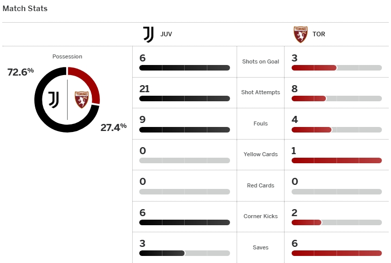 จบเกม ยูเวนตุส เปิดบ้านเสมอ โตริโน่ 0-0 เก็บเพิ่มเป็น 19 คะแนนจาก 11 เกม ส่วน โตริโน่ มี 14 แต้ม