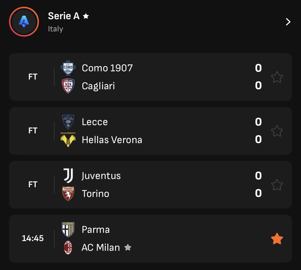 ศึกตูริน ดาร์บี้ ระหว่าง ยูเวนตุส กับ โตริโน่ จบลงด้วยผลเสมอ 0-0 ต้องชมความยอดเยี่ยมของสองผู้รักษาประตูจากทั้งสองทีมอย่าง มิเคเล่ ดิ เกรกอริโอ และ อัลแบร์โต้ ปาเลอารี่ งัดซูเปอร์เซฟให้เห็นทั้งคู่ ซึ่งผลเสมอยังทำให้ ลูชาโน่ สปัลเลตติ ไม่แพ้ใครจากการคุมทีม 3 นัด แต่หลุดเสมอ 2 เกมติดต่อกันรวมทุกรายการแล้ว