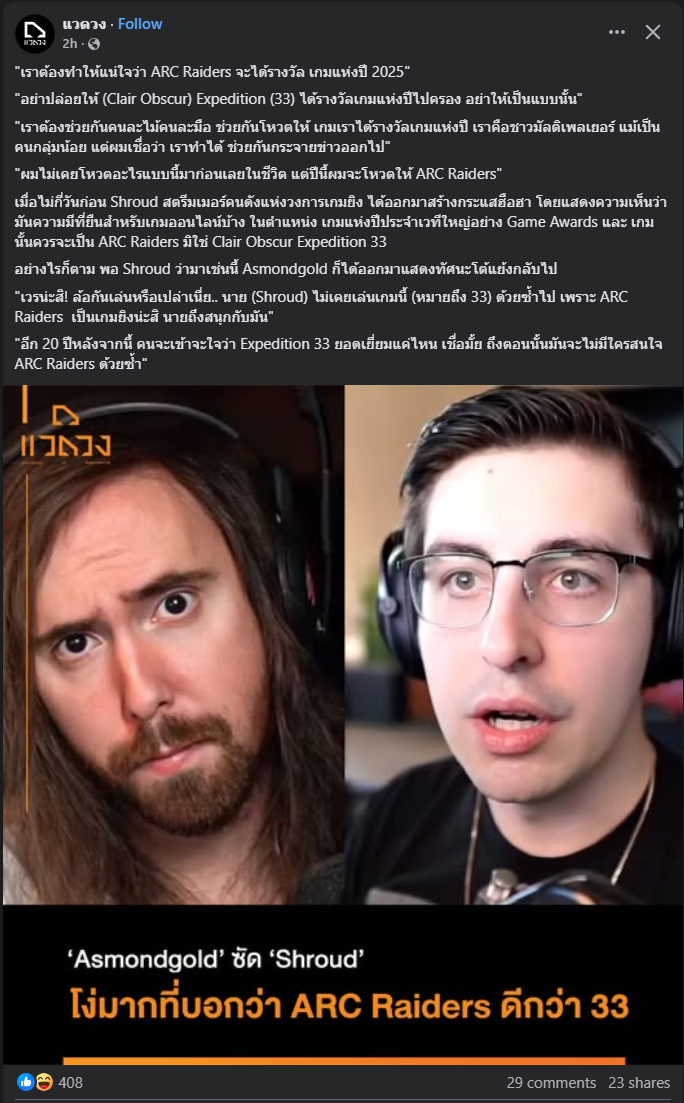 [RE: 'Asmondgold' :ซัด 'Shroud' โง่มากที่บอกว่า ARC Raiders ดีกว่า 33]