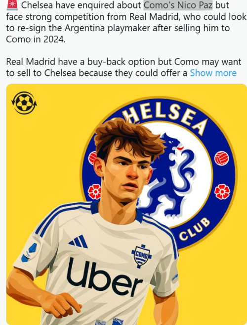 2. มีข่าวเล็กๆว่าเชลซีก็สนใจเด็กเทพ Nico paz ของทีมComo ที่ยืมมาจากมาดริด เอาตรงๆผมเห็นข่าวนี้ผมแอบดีใจ เพราะติดตามดูComo (เพราะเชสฟาเบกราส) เลยเห็นฟอร์มไอ้หนูนี่ เออวะแม่งเก่งคลาสของจริง อยากได้เลยแต่อย่างว่ามาดริดมีออฟชั่นซื้อกลัทีมแรก แถมได้ราคาครึ่งนึงด้วย ไปเอาเด็กเขาเผลอๆแม่งมาดูด เอสตาเวาอีก