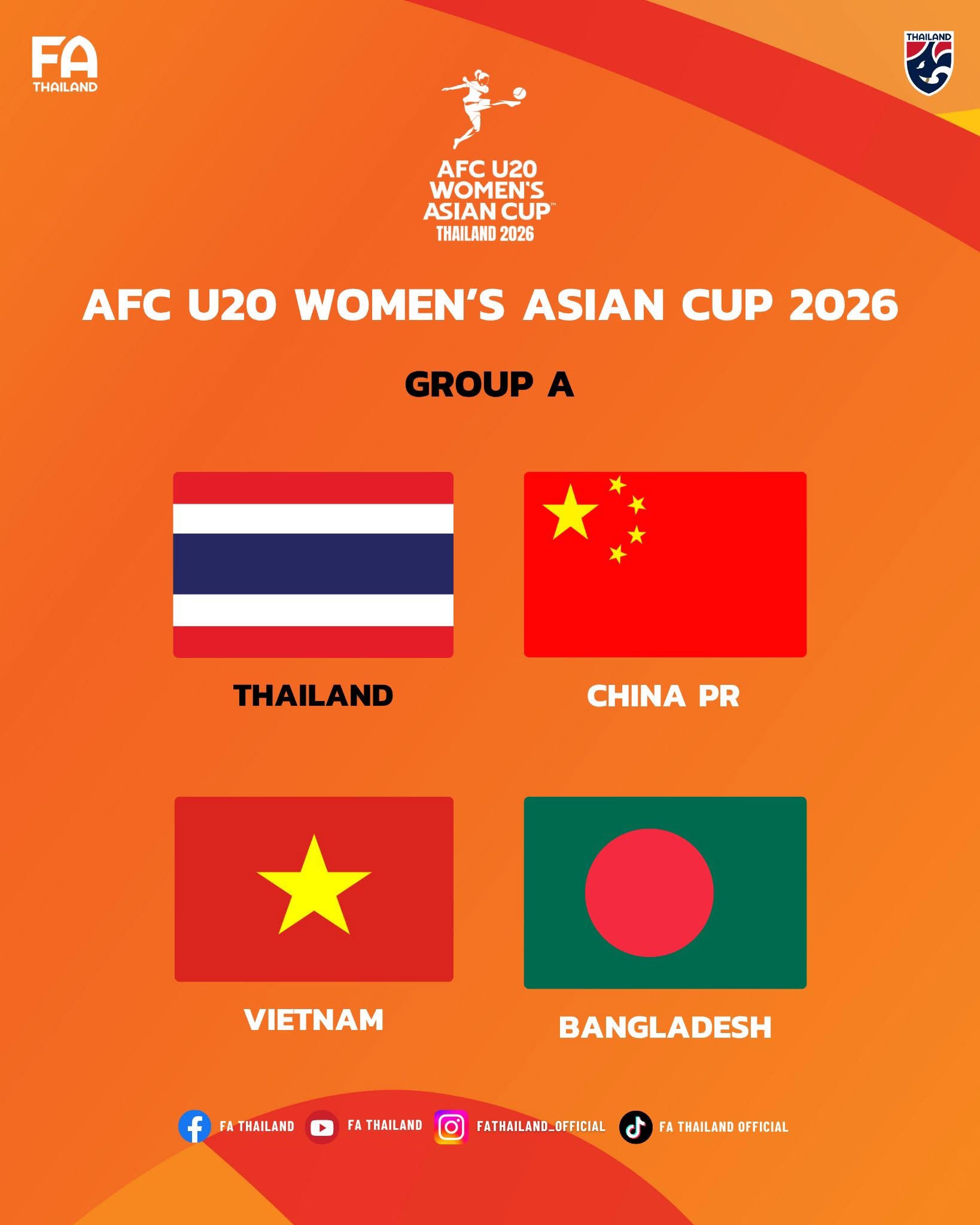 ฟุตบอลหญิงไทย U20 ร่วมสาย จีน, เวียดนาม, บังคลาเทศ ศึกชิงแชมป์เอเชีย รอบสุดท้าย 2026 ที่ไทย