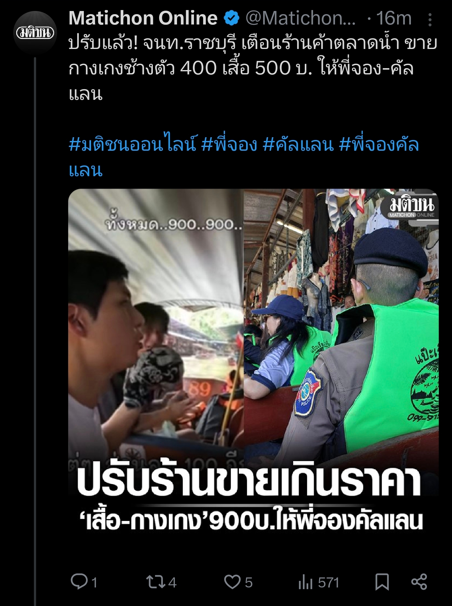 [RE: ปรับแล้ว ! ร้านขายเกินราคา 'เสื้อ-กางเกง' 900 บาท ให้พี่จองคัลแลน]