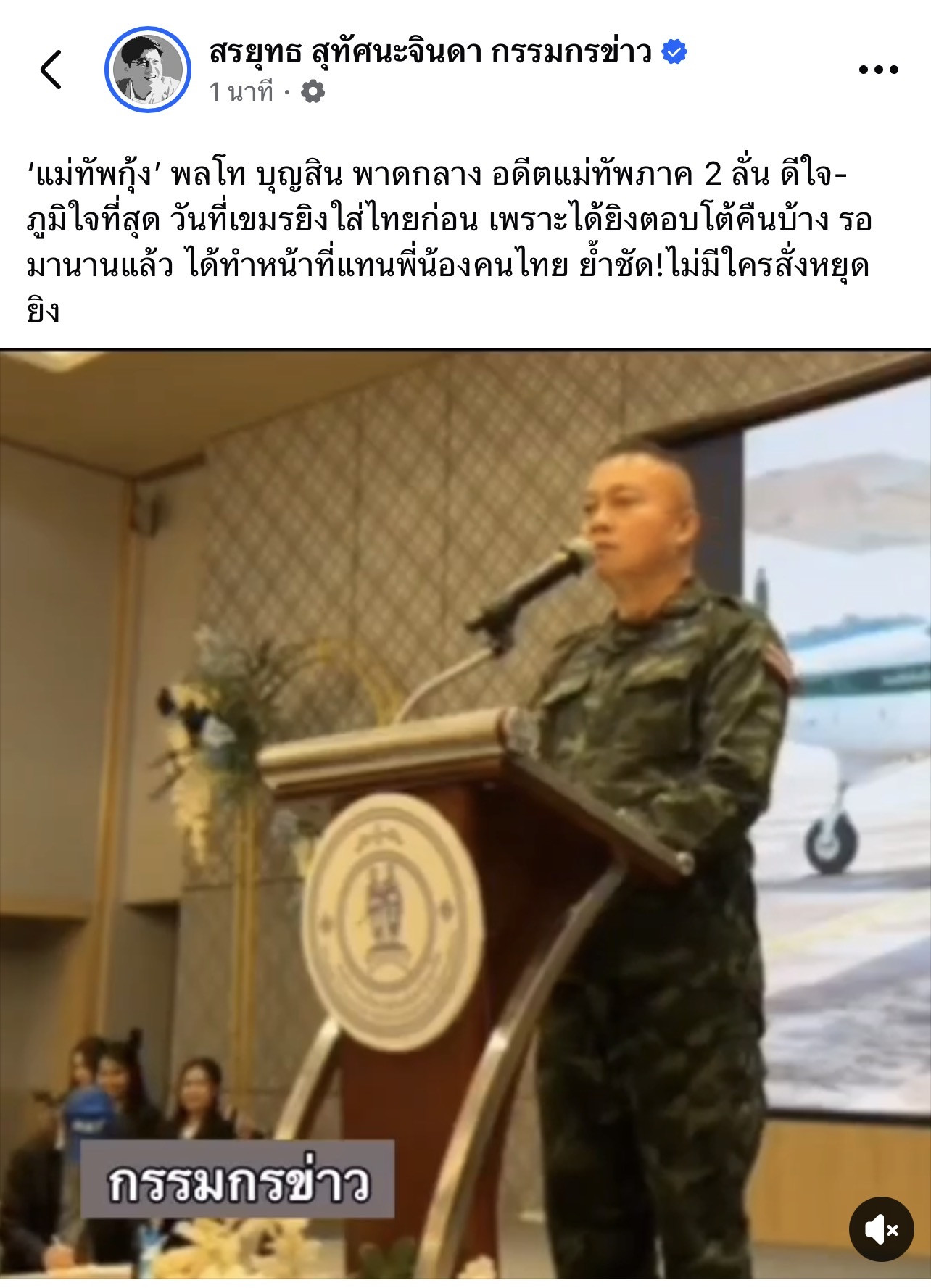แม่ทัพกุ้งดีใจภูมิใจเขมรยิงไทยก่อนเพราะเราจะได้ยิงคืน