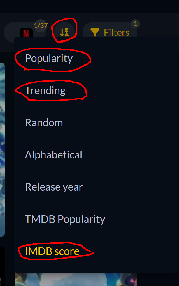 ป.ล.2 ฟิลเตอร์ที่ผมตั้งไว้เป็นเรียงลำดับจากคะแนน (imdb score) สูงๆมาก่อน ใครจะปรับเป็น เรียงตาม (trending) / (poppularity) ก็ตามใจชอบ แนะนำ 3 อันนี้