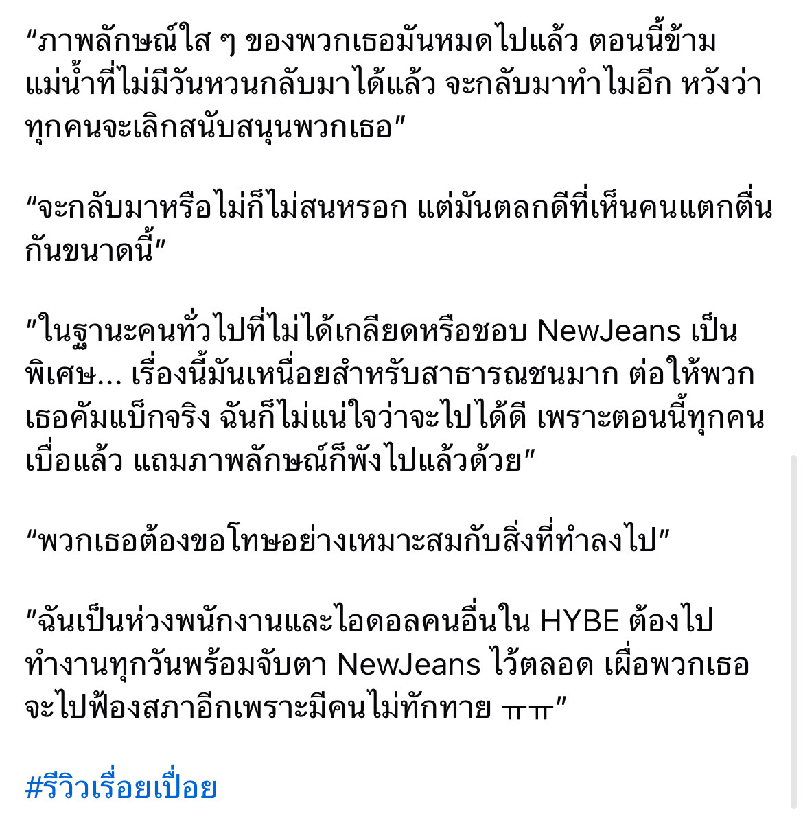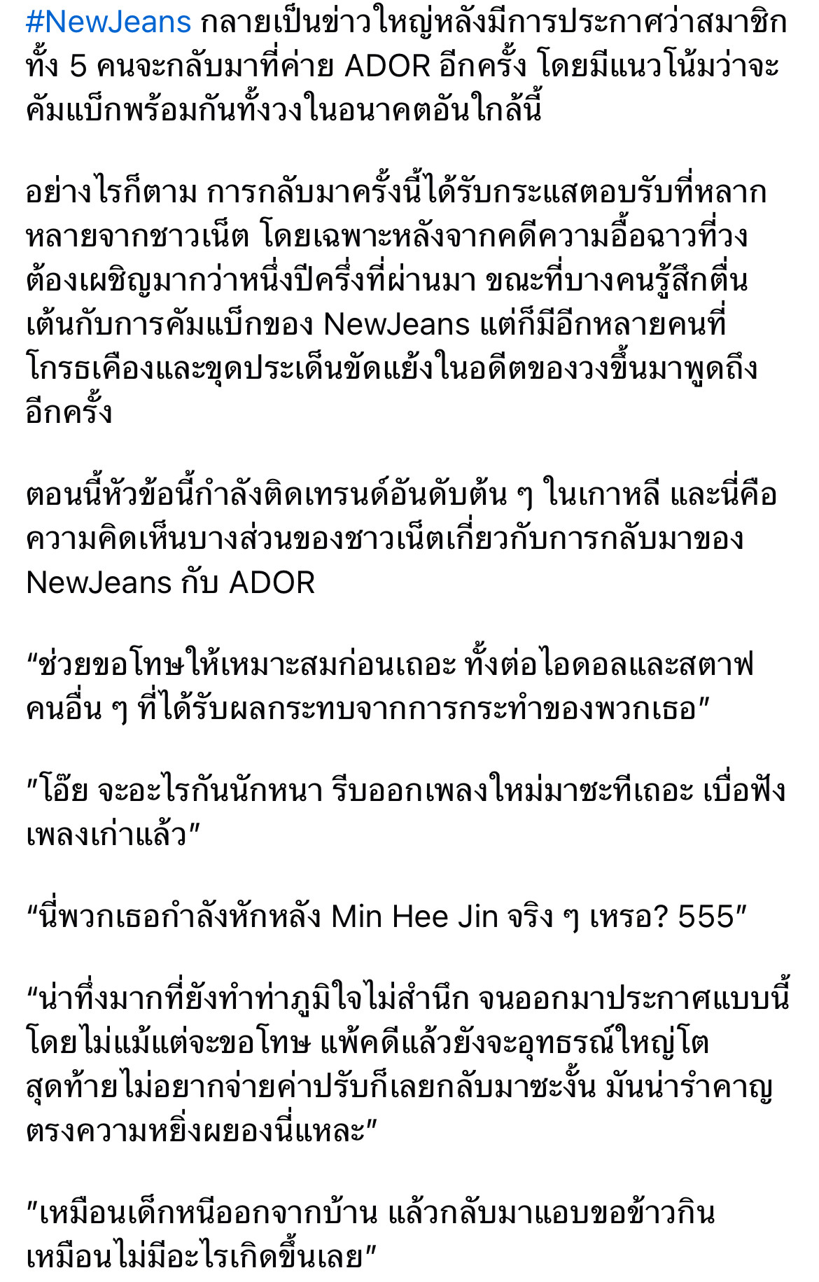 ผมว่าการที่ค่ายประกาศว่ากลับเข้าค่ายสองคนอะ มันคือการสร้างความแตกแยกในหมู่แฟนคลับ newjeans มากกว่า