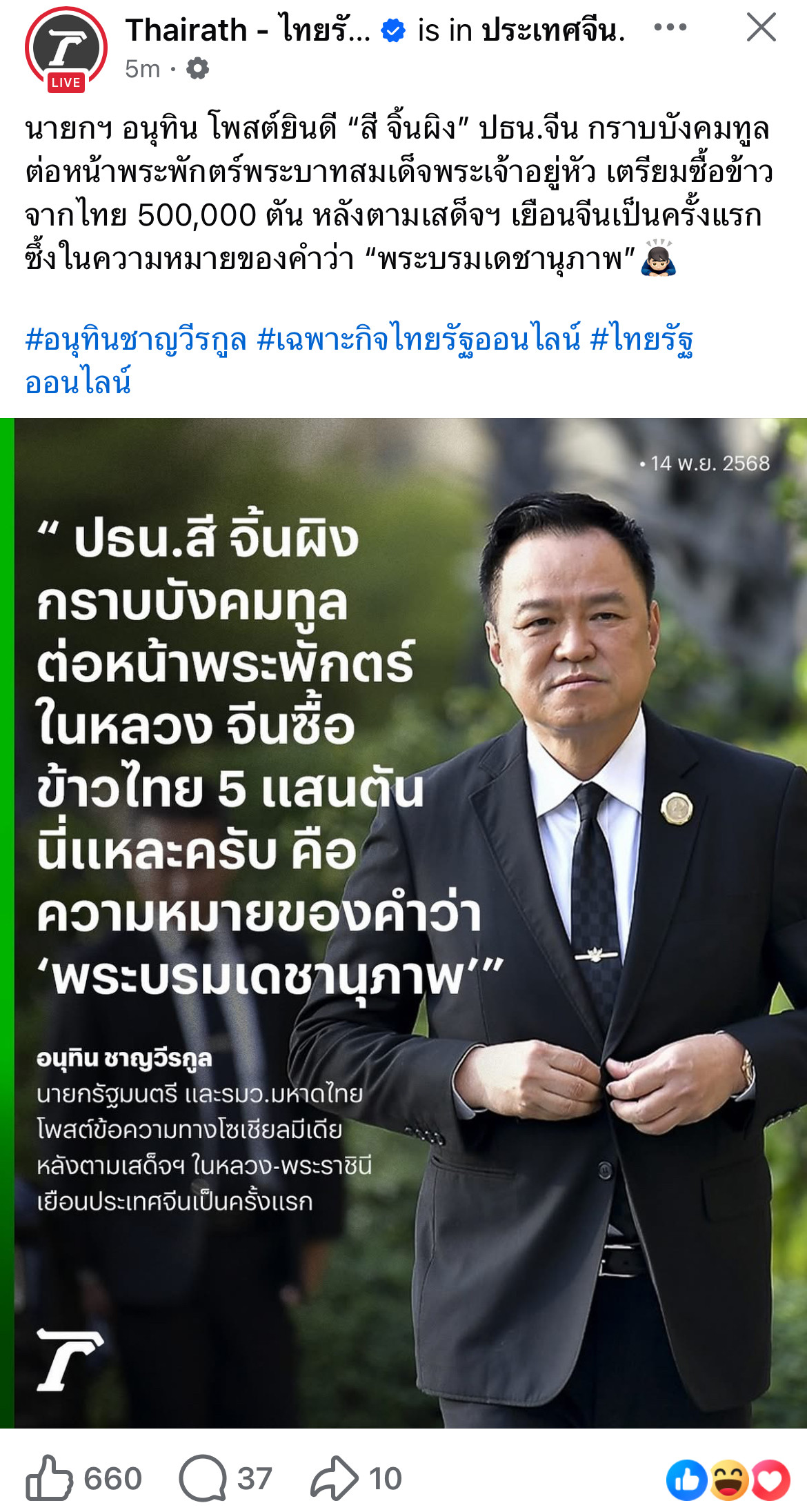 สื่อจีนเอาไปลงแบบแปลจากราชาศัพท์ก็ไม่ได้มีความหมายผิดเพี้ยนอะไร