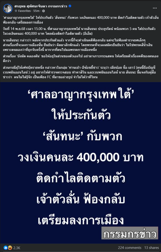 [RE: ศาลให้ประกันตัว ‘สันทนะ’ ติดกำไลติดตามตัว เจ้าตัวลั่น ฟ้องกลับ-เตรียมลงการเมือง]