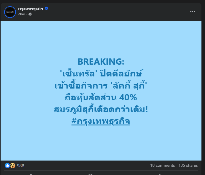 เห็นโอกาสในการทำกำไรจากข้อได้เปรียบในเรื่องของสถานที่ล่ะมั้งครับ ห้างที่อยู่ในเครือเซนทรัลมีอยู่ทั่วประเทศ ทั้งเซ็นทรัล โรบินสัน และอื่นๆ ผมคิดว่าการขยายกิจการซุกี้ตัวนี้เดือดแน่นอน เราจะได้เห็นแบรนด์นี้บ่อยขึ้น เยอะขึ้นตามต่างจังหวัด แน่นอนว่าเซ็นทรัลคงไม่ได้หวังจะล้มตี๋น้อย MK หรือหน้าใหม่ๆ แต่คงเข้ามาแย่ง market share ไปไม่น้อย
