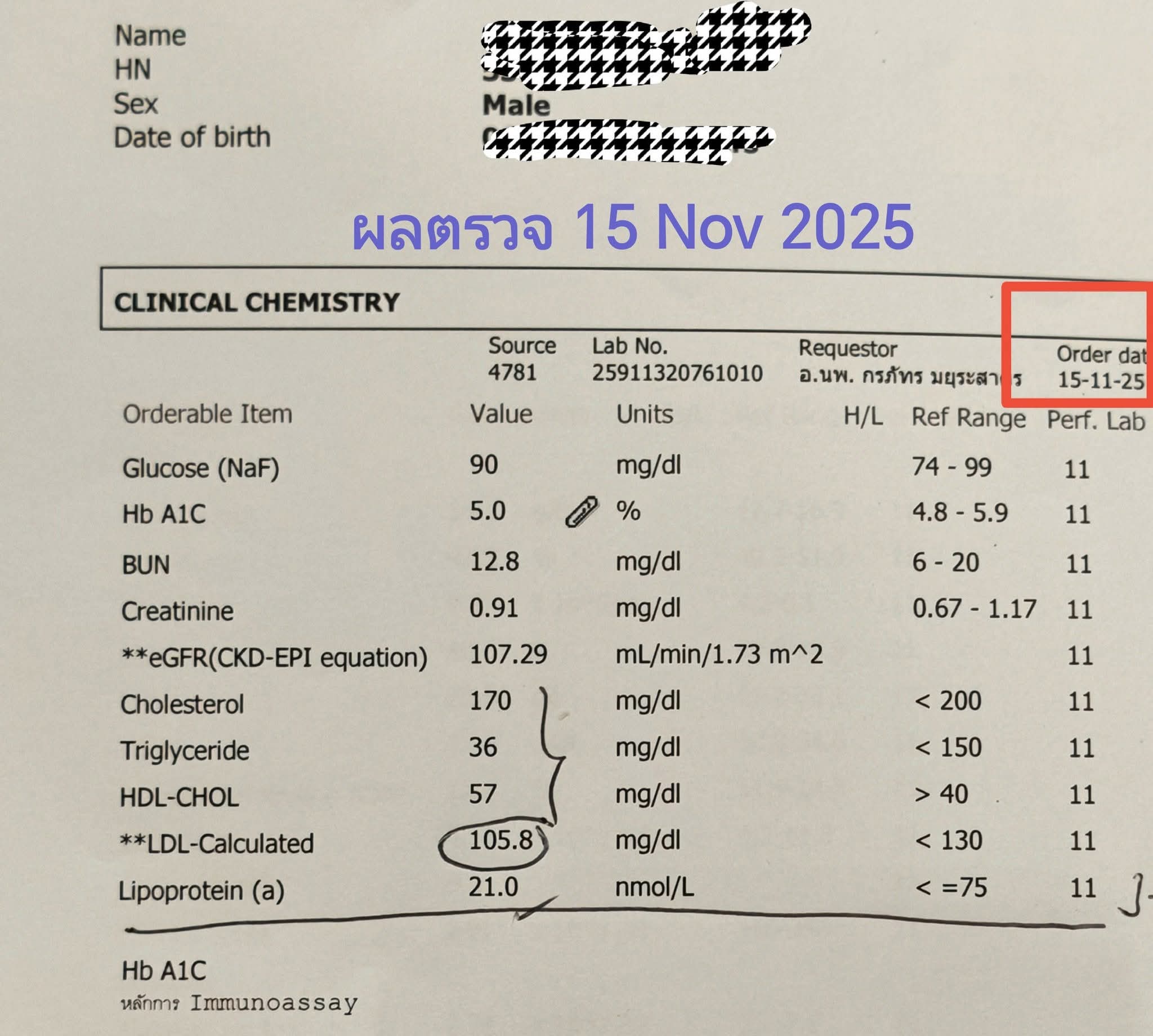 [RE]ต่อจากกระทู้เดิมที่ LDL ลดจาก 198 เหลือ 122 ใน 6 สัปดาห์แบบไม่ใช้ยา