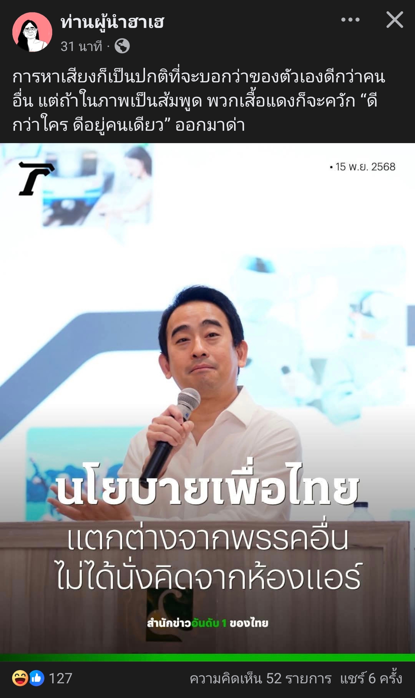 Top Comment [RE: นโยบายเพื่อไทย แตกต่างจากพรรคอื่น ไม่ได้คิดจากห้องแอร์]