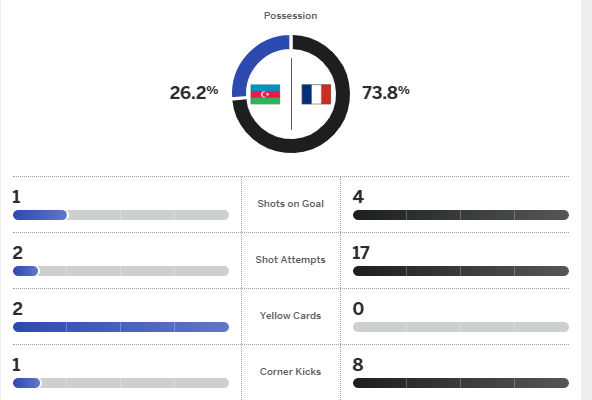 ฝรั่งเศส ทยอยเปลี่ยนตัวออกไปพัก โธแว็ง ได้ลงมาแทนไม่ทันไร มีจังหวะง้างยิงแต่แนวรับ อาเซอร์ไบจาน บล็อคไว้ แล้วเวลาที่เหลือจนทดเจ็บ 2 นาที ฝรั่งเศส ปิดเกมคว้าชัย