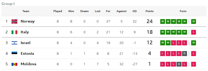 แม้ทางทฤษฎี อิตาลี ยังมีโอกาสเข้ารอบอัตโนมัติ หากเอาชนะ นอร์เวย์ แบบถล่มทลาย แต่ในทางปฏิบัติแทบจะเป็นไปไม่ได้เลยที่จะทำเช่นนั้นได้