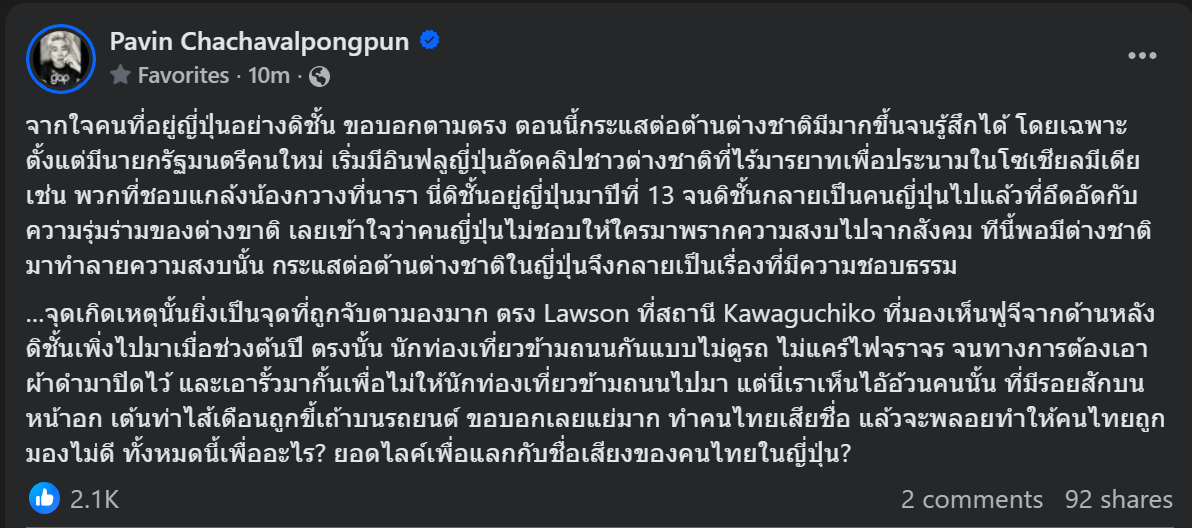[RE: จากใจคนที่อยู่ญี่ปุ่นอย่างดิชั้น ตอนนี้กระแสต่อต้านต่างชาติมีมากขึ้นจนรู้สึกได้]