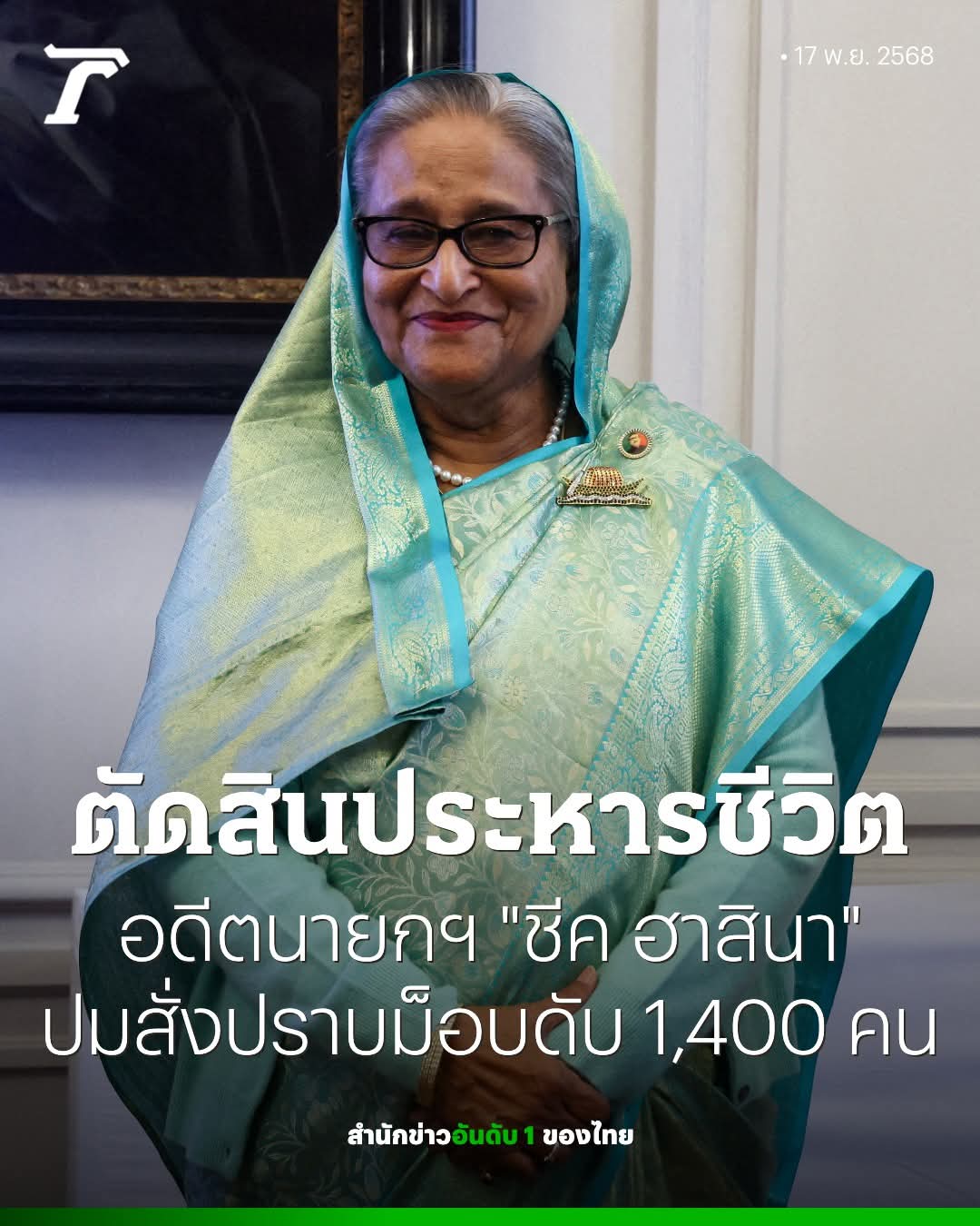 ศาลอาชญากรรมสงครามของบังกลาเทศได้ตัดสินโทษประหารชีวิต นางชีค ฮาสินา อดีตนายกรัฐมนตรี โดยสรุปผลการไต่สวนนานหลายเดือนที่พบว่าเธอมีความผิดฐานสั่งการให้มีการปราบปรามการลุกฮือที่นำโดยนักศึกษาอย่างรุนแรงเมื่อปีที่แล้ว จนมีผู้เสียชีวิตกว่า 1,400 ศพ