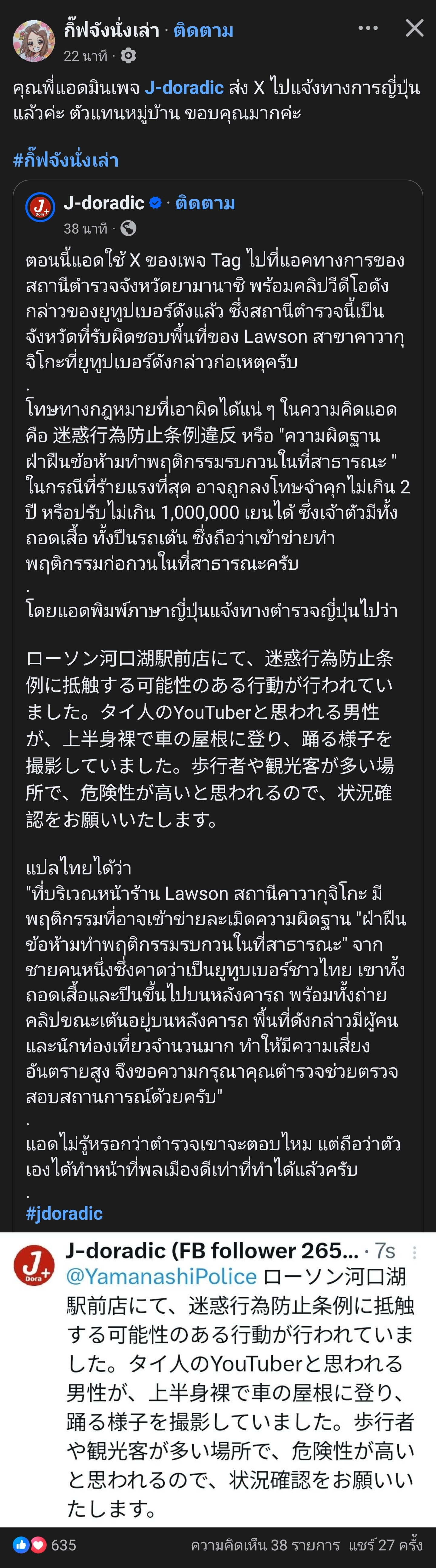 [RE: แอดมิน J-doradic แทคไปที่ทวิตทางการของตำรวจญี่ปุ่นแล้ว]