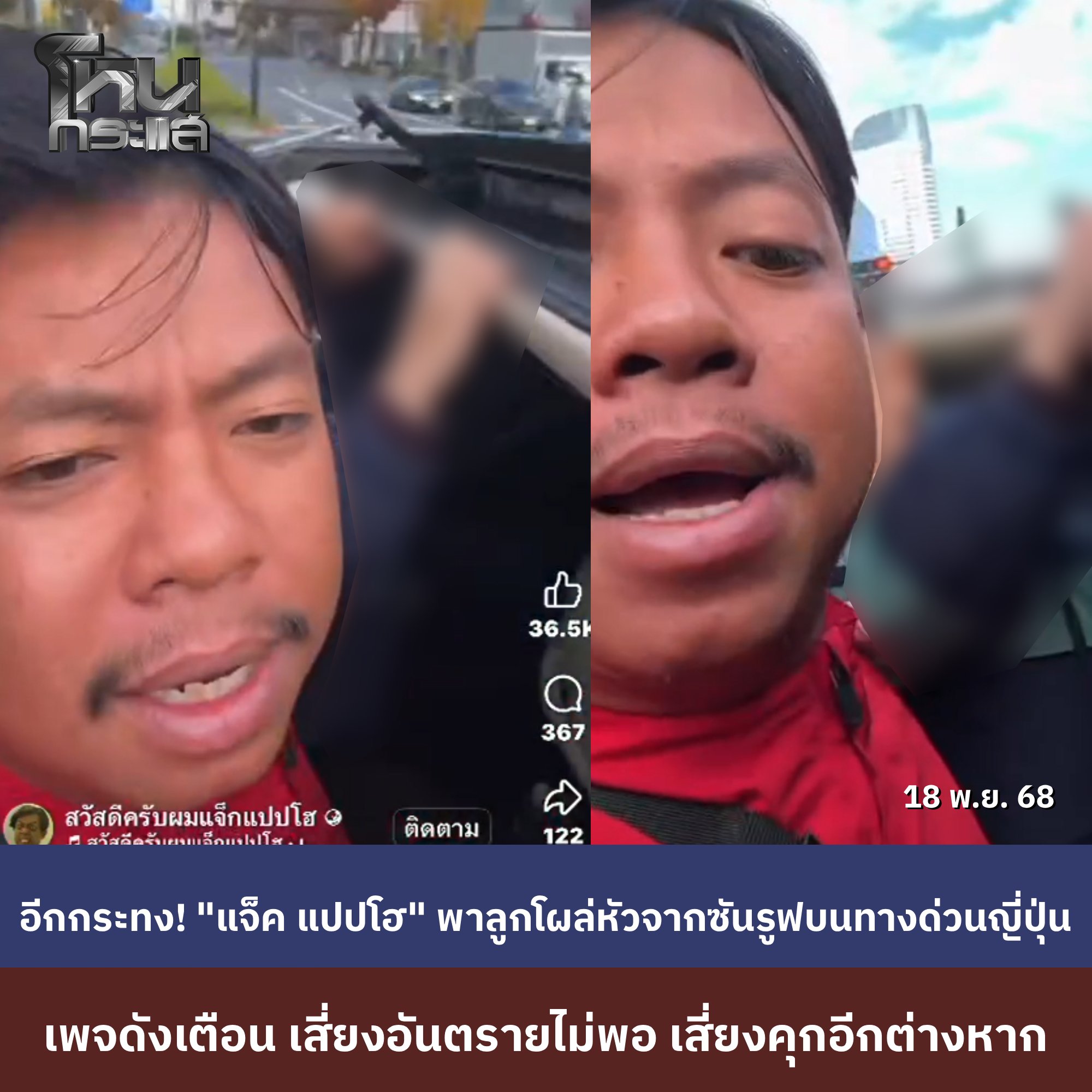 จากกรณีดราม่า “แจ็ค แปปโฮ” ยูทูบเบอร์ชื่อดังแสดงพฤติกรรมไม่เหมาะสมปีนหลังคารถและถอดเสื้อเต้นหน้าร้านสะดวกซื้อที่ประเทศญี่ปุ่น ล่าสุดเพจดังขุดวีรกรรมเพิ่ม หลังพบภาพพาลูกโผล่ศีรษะพ้นซันรูฟขณะรถวิ่งบนทางด่วน ชี้ผิดกฎหมายจราจรและอันตรายร้ายแรง