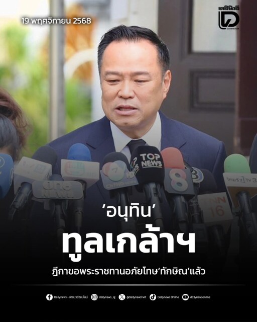 ที่ทำเนียบรัฐบาล นายอนุทิน ชาญวีรกูล นายกรัฐมนตรีและรมว.มหาดไทย ให้สัมภาษณ์ถึงการขออภัยโทษของนายทักษิณ ชินวัตร อดีตนายกฯ รัฐบาลได้นำขึ้นทูลเกล้าฯ แล้วหรือยังว่า ได้เช็กแล้ว มันเป็นเรื่องที่ค้างมาตั้งแต่อดีตสมัย พ.ต.อ.ทวี สอดส่อง อดีต รมว.ยุติธรรม ซึ่งเราก็ยืนตามนั้นไป