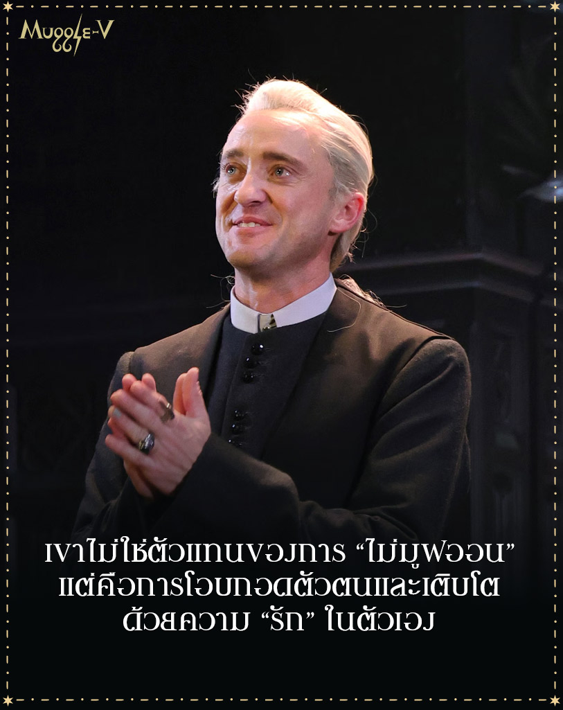 สิ่งที่ทอม เฟลตัน ทำลงไป ไม่ใช่การ "ไม่มูฟออน" มันไม่ใช่การไม่สลัดทิ้งวัยเด็ก มันไม่ใช่การวิ่งหนีอดีตที่เป็นเงาหลอกหลอน แต่มันเป็นการยอมรับว่าเขาเคยเป็นเดรโก มัลฟอย และยังเป็นอยู่ในสายตาของแฟน ๆ ที่รักเขา