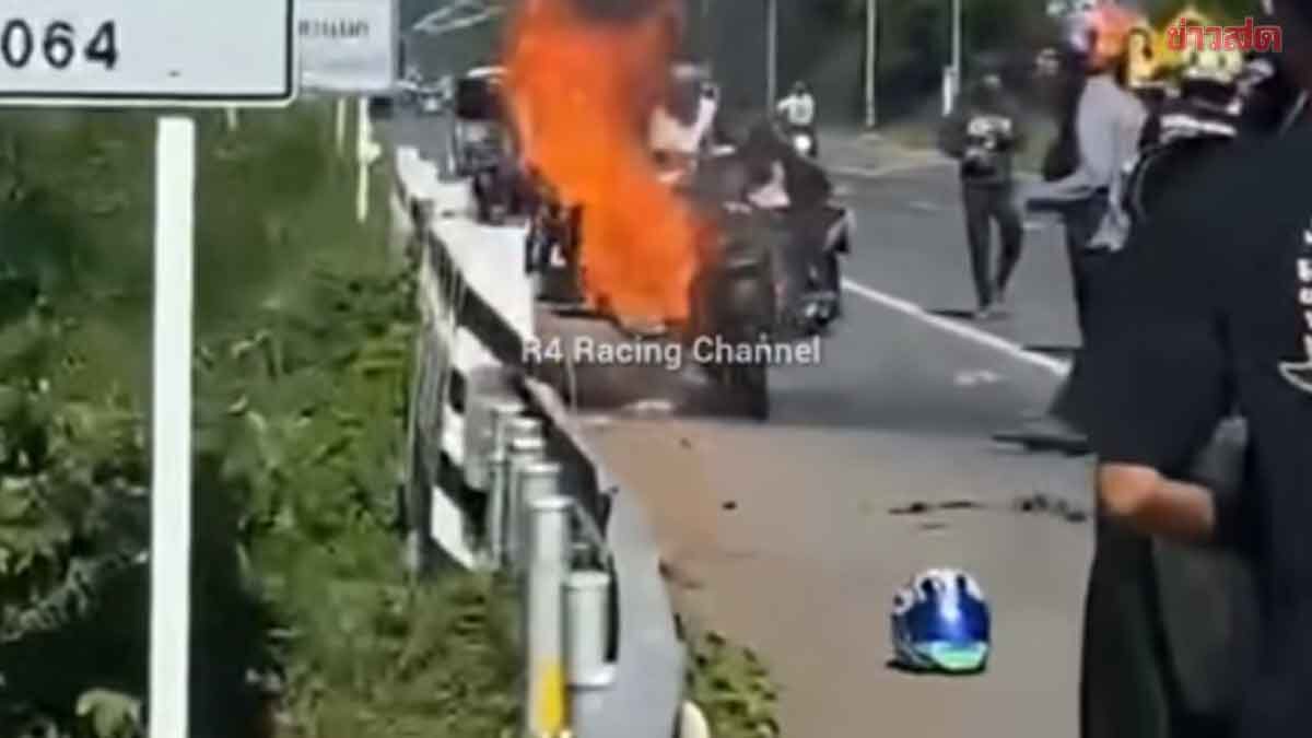 โดยระบุว่า เเตกอีก1 #น้ำไม่อาบ เกิดเหตุเพลิงไหม้รถจักรยานยนต์ เบื้องต้นคนขี่ปลอดภัย #ส่วนรถก็ตามคลิปเลยจ้า