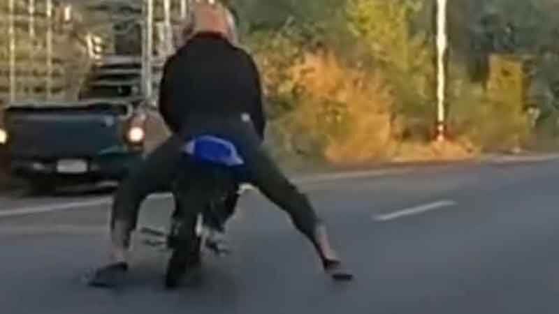 จู่ๆรถจักรยานยนต์คันหนึ่งก็เกิดยางแตกเสียหลักส่ายไปส่ายมาจนเกือบจะเกิดอุบัติเหตุ