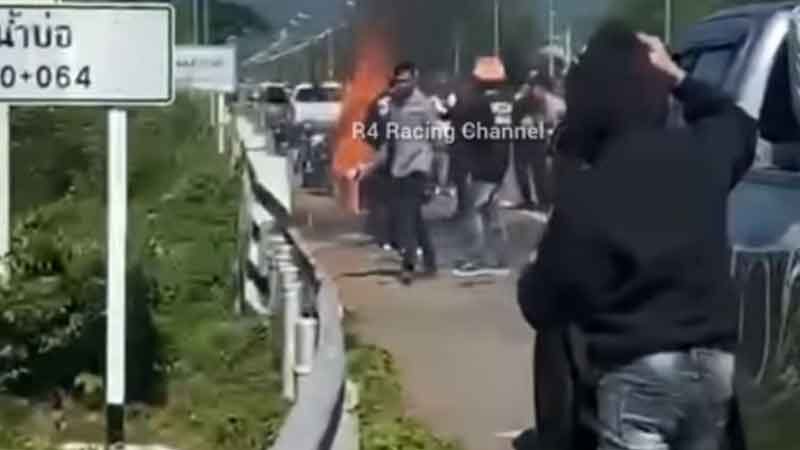 ผู้สื่อข่าวรายงานว่าในโซเชียล มีการแชร์คลิปเหตุหารณ์ไฟไหม้รถจยย. โดยมีคนช่วยกันดับ