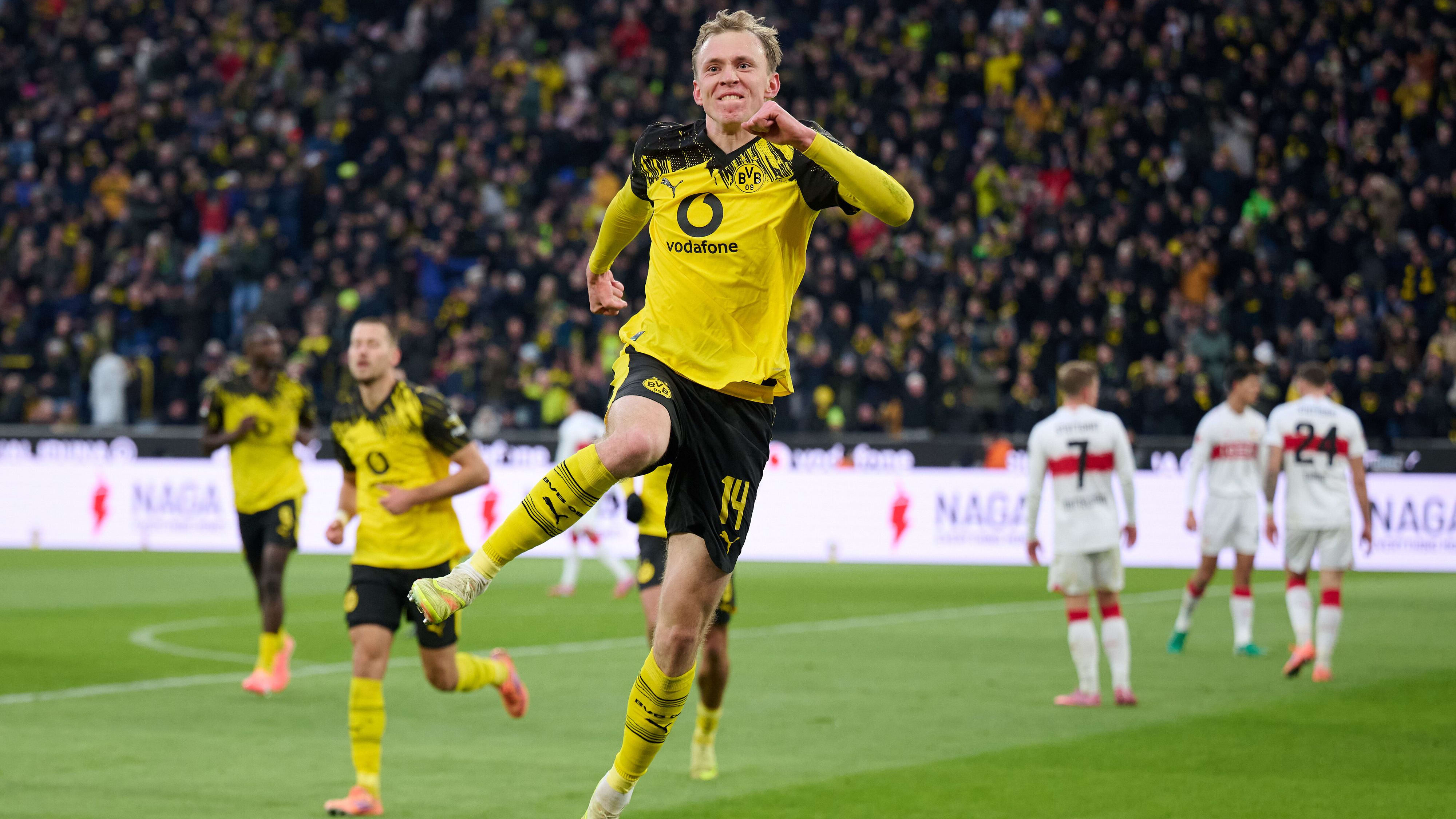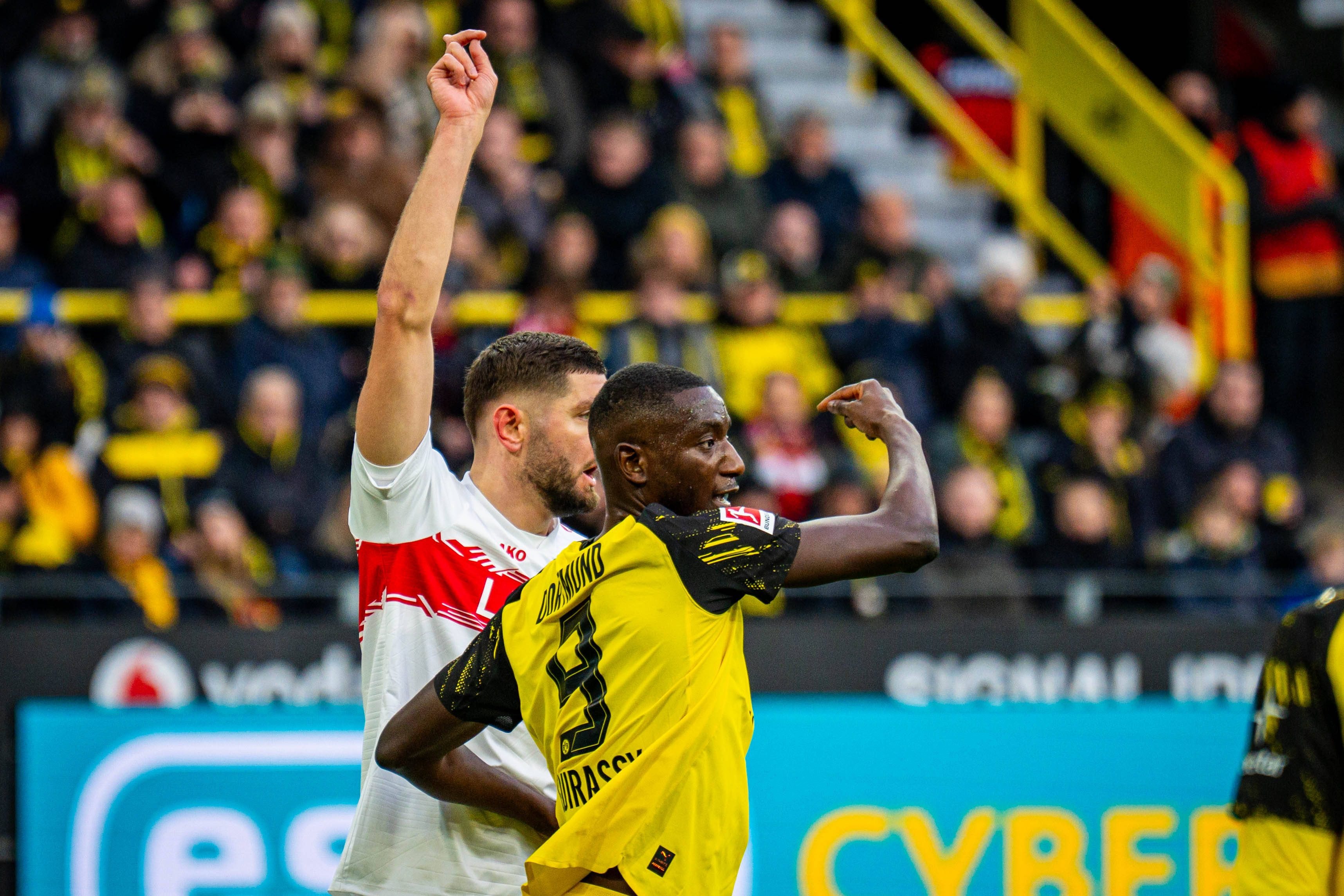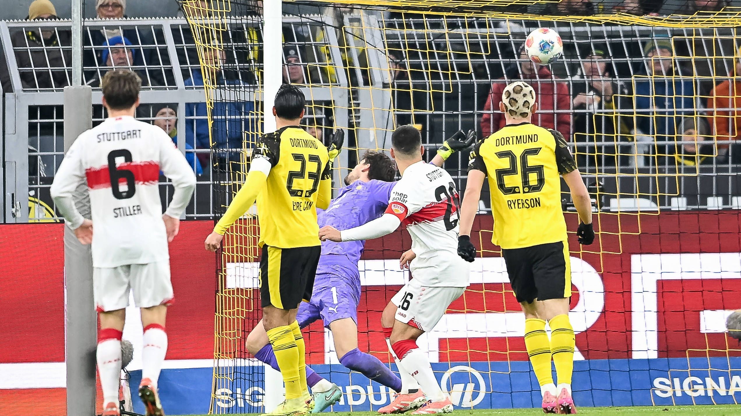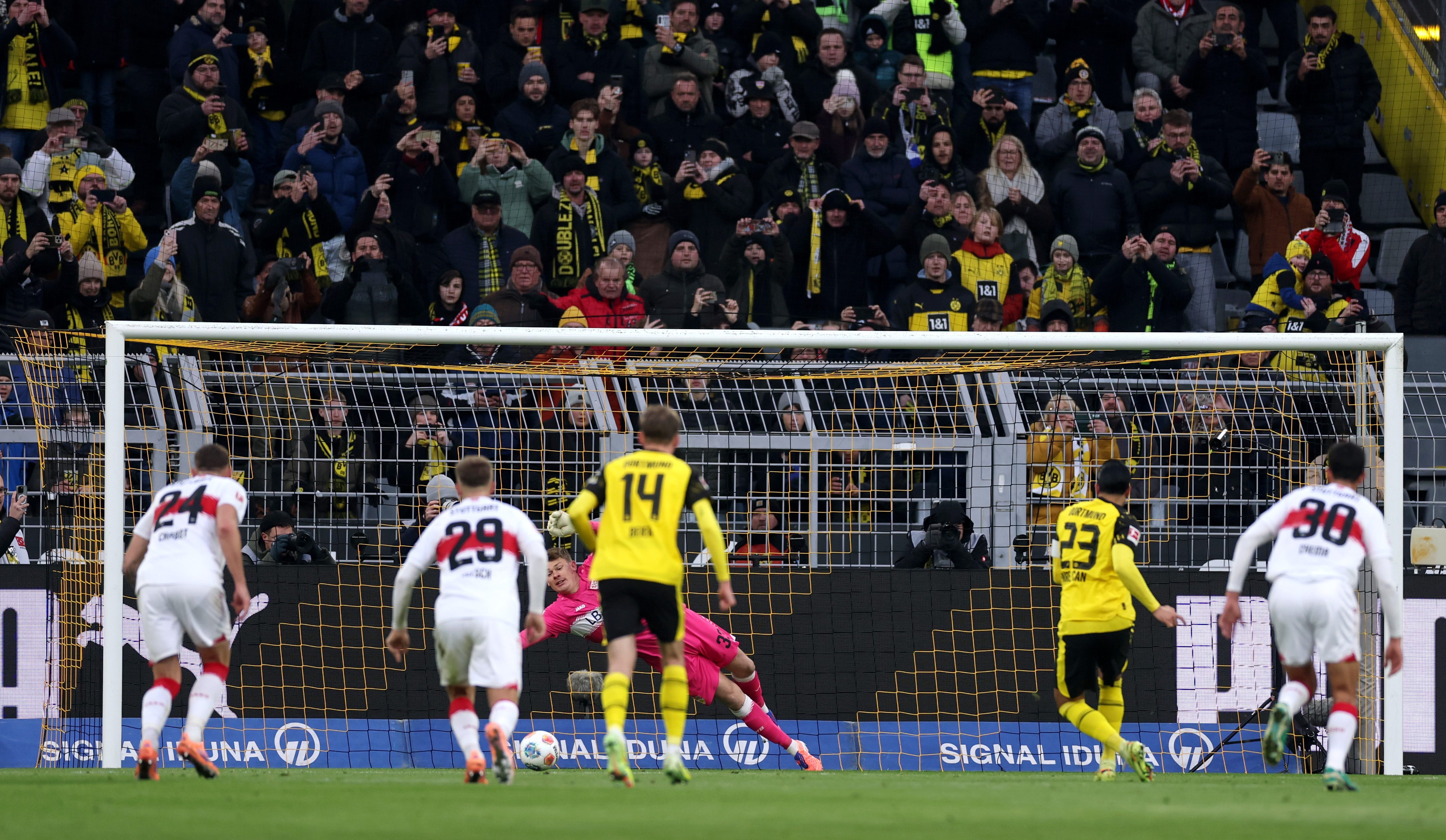 โบรุสเซีย ดอร์ทมุนด์ จืดเลยออกนำห่างก่อนในครึ่งแรกแต่มาโดน เดนิซ อุนดาฟ เบิ้ลทำให้ สตุ๊ตการ์ท ตามตีเสมอได้ แล้วพอ คาริม อเดเยมี่ ยิงประตูท้ายเกมให้นำอีกครั้งก็มาโดน อุนดาฟ คนเดิมซัดในนาที 90+1 ทำให้ เสือเหลือง ต้องเจ๊ากับ ม้าขาว 3-3