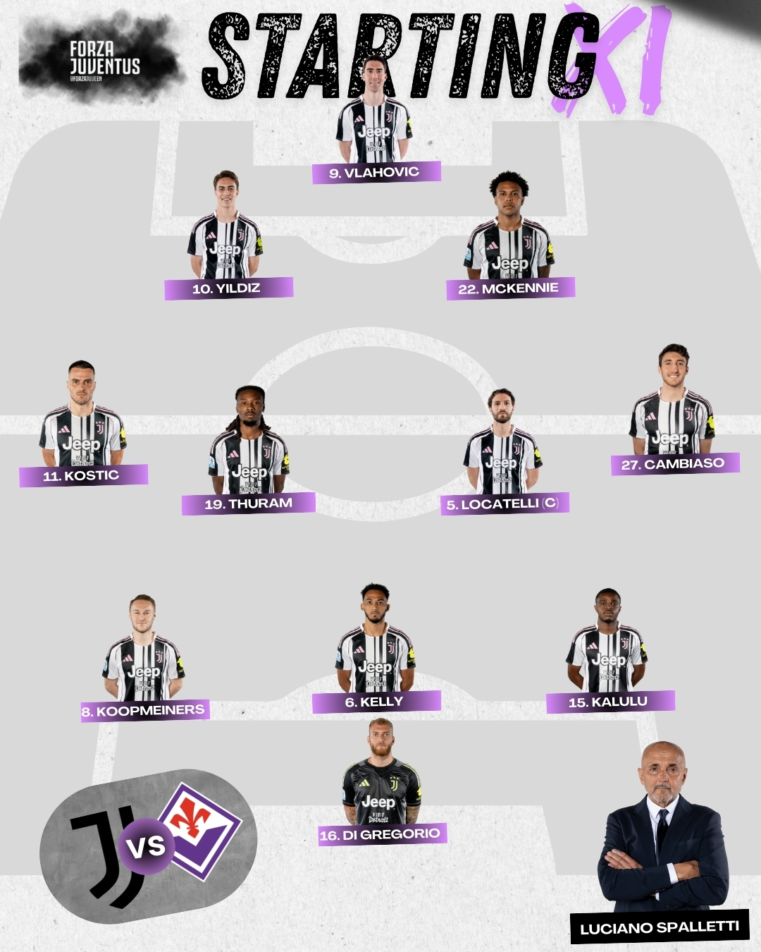 A disposizione : Perin, Scaglia, Gatti, Conceicao, Zhegrova, Adzic, Openda, Miretti, Joao Mario, David, Cabal, Rouhi, Pedro Felipe.