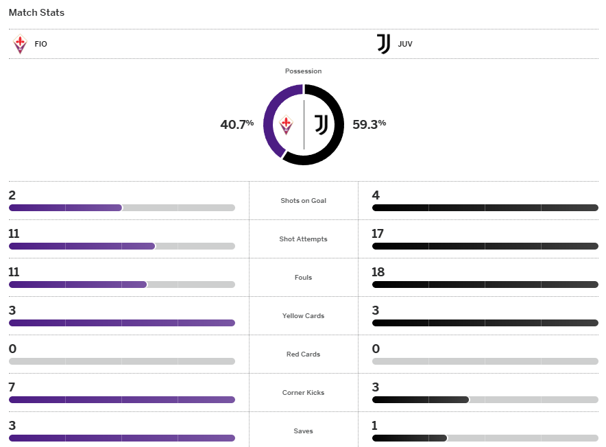 จบเกม ยูเวนตุส เสมอกับ ฟิออเรนติน่า 1-1 ทำให้พวกเขาเจ๊า 3 เกมรวดในทุกรายการและยังอยู่อันดับ 6 ในตารางต่อไปแต่อาจโดนเบียดหล่นไปทีหลัง