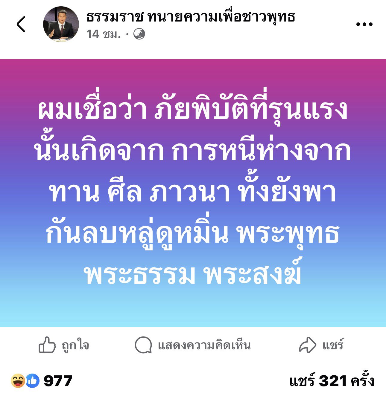 ทนายธรรมราช"ภัยพิบัติ ครั้งนี้ เกิดจากการดูหมิ่นศาสนา พระพุทธ พระธรรม พระสงฆ"