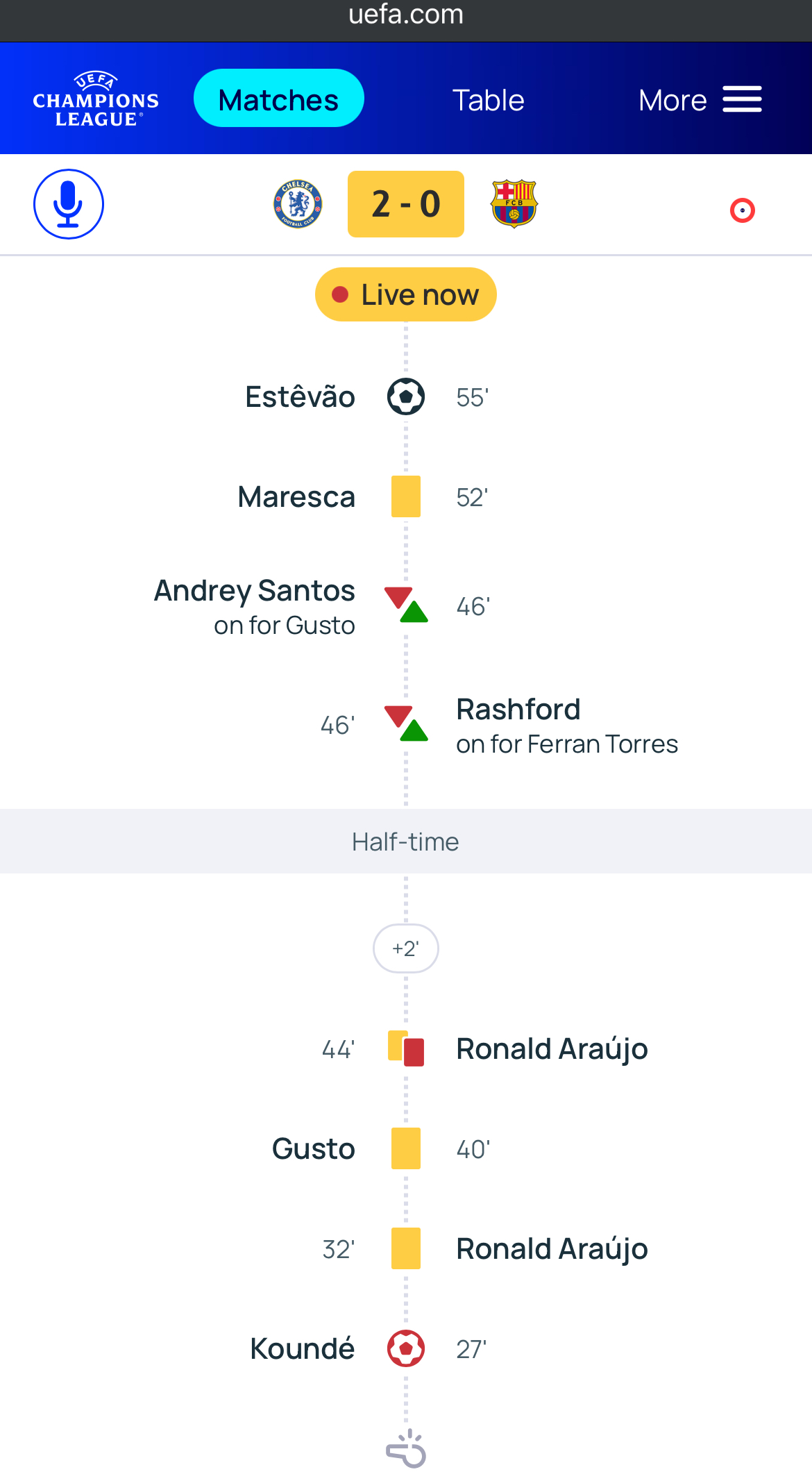 สรุปข้อมูล official ในเว็บ Uefa คูคูไม่โดนเหลืองนะ มาเรสก้าโดน
