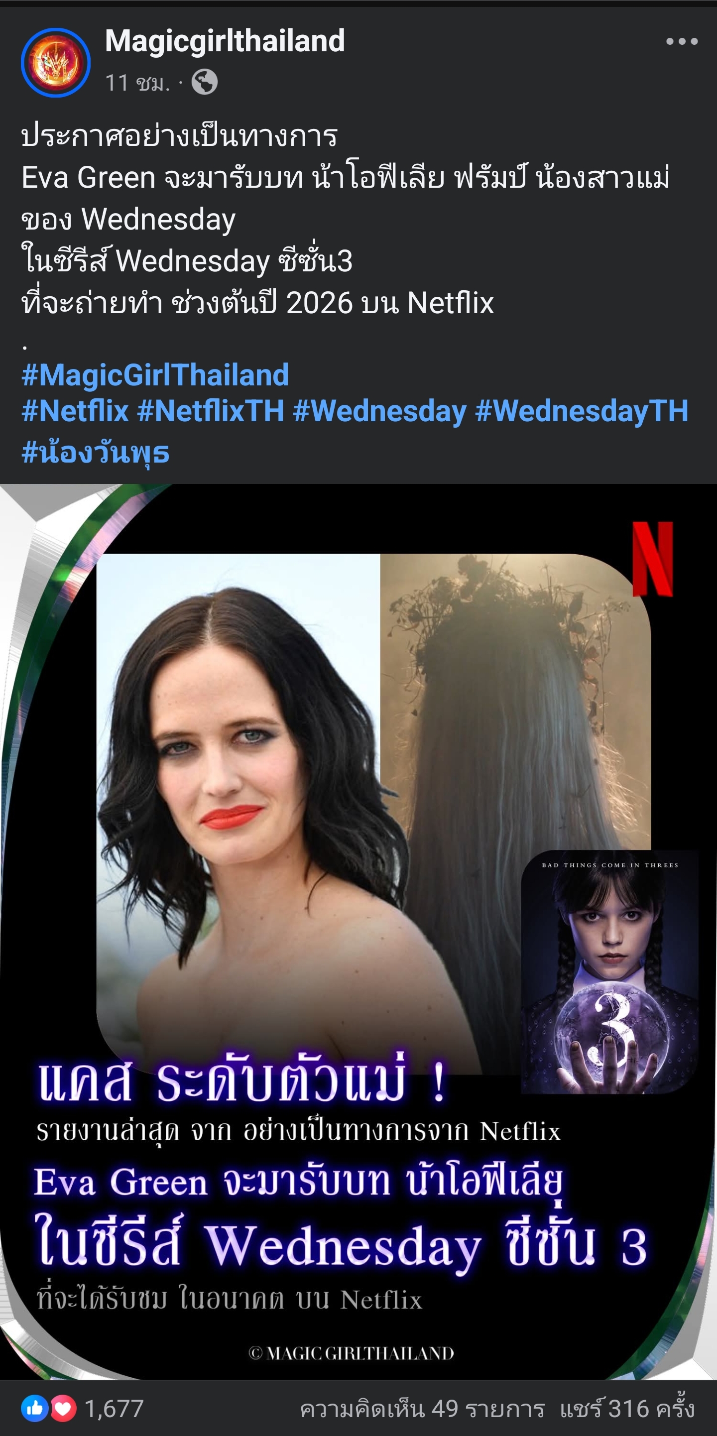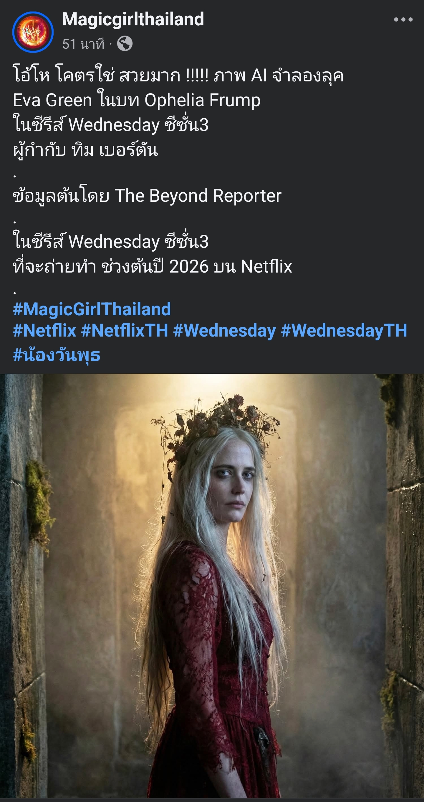 [RE]Eva Green จะมารับบทน้าโอฟีเลีย ในซีรีส์ Wednesday SS3