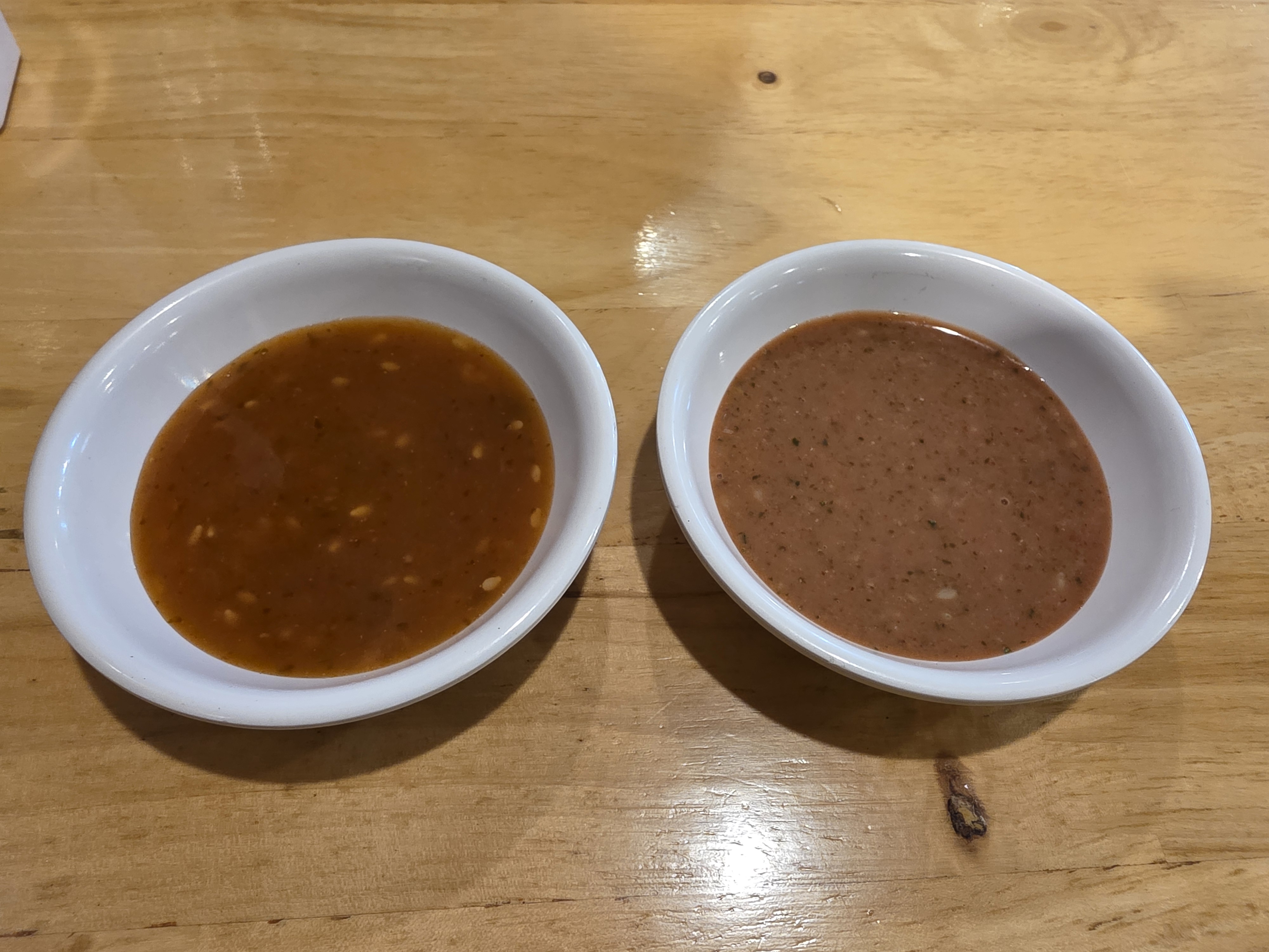น้ำจิ้มอร่อยทั้งสองแบบเลย กินแบบผสมกันบ้าง สลับกันบ้างสนุกดี