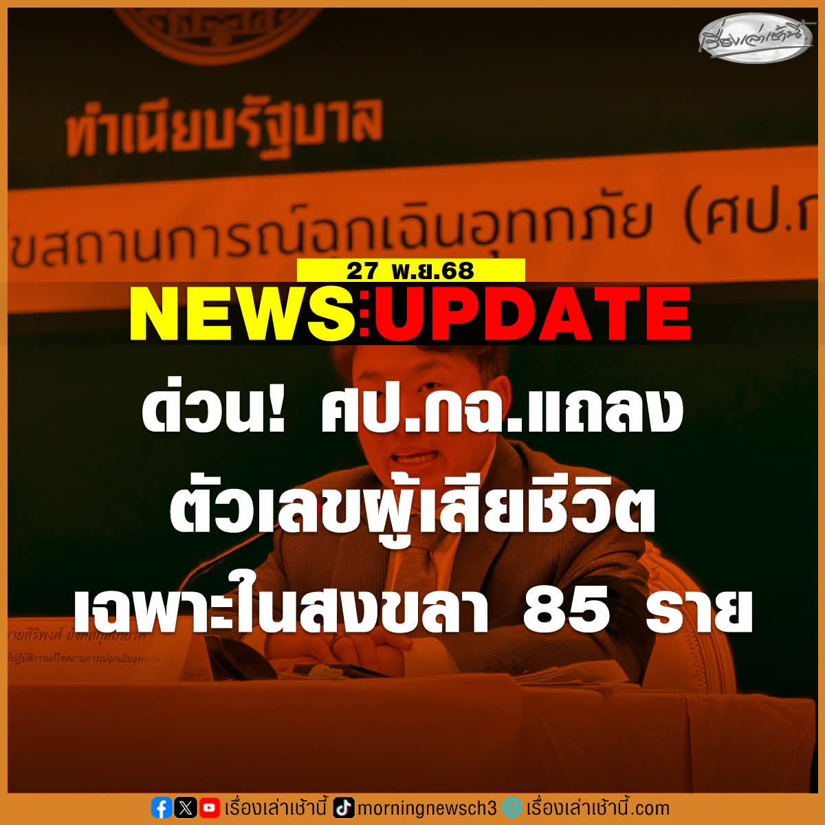 ด่วน! ศป.กฉ. แถลงตัวเลขผู้เสียชีวิต เฉพาะในจังหวัดสงขลา 85 ราย