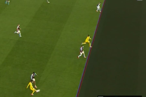 วิลล่า เปลี่ยน โอนาน่า ออกไปพักเพิ่ม ส่วนในสนาม กามาร่า จ่ายให้ ซานโช่ ยิงเรียดที่ัฝั่งขวาเขตโทษบอลหลุดเสา