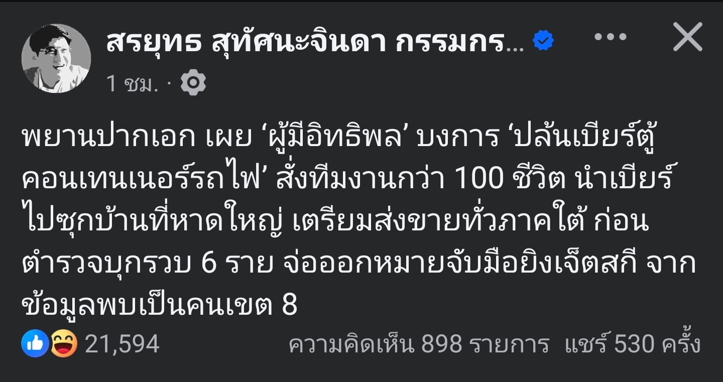 RE: พยานปากเอกเผย 'ผู้มีอิทธิพล' บงการ 'ปล้นเบียร์ตู้คอนเทนเนอร์รถไฟ'