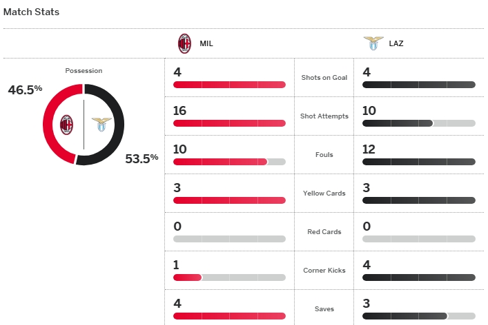 จบเกม เอซี มิลาน เปิดบ้านชนะ ลาซิโอ 1-0 เก็บเพิ่มเป็น 28 คะแนนจาก 13 เกม