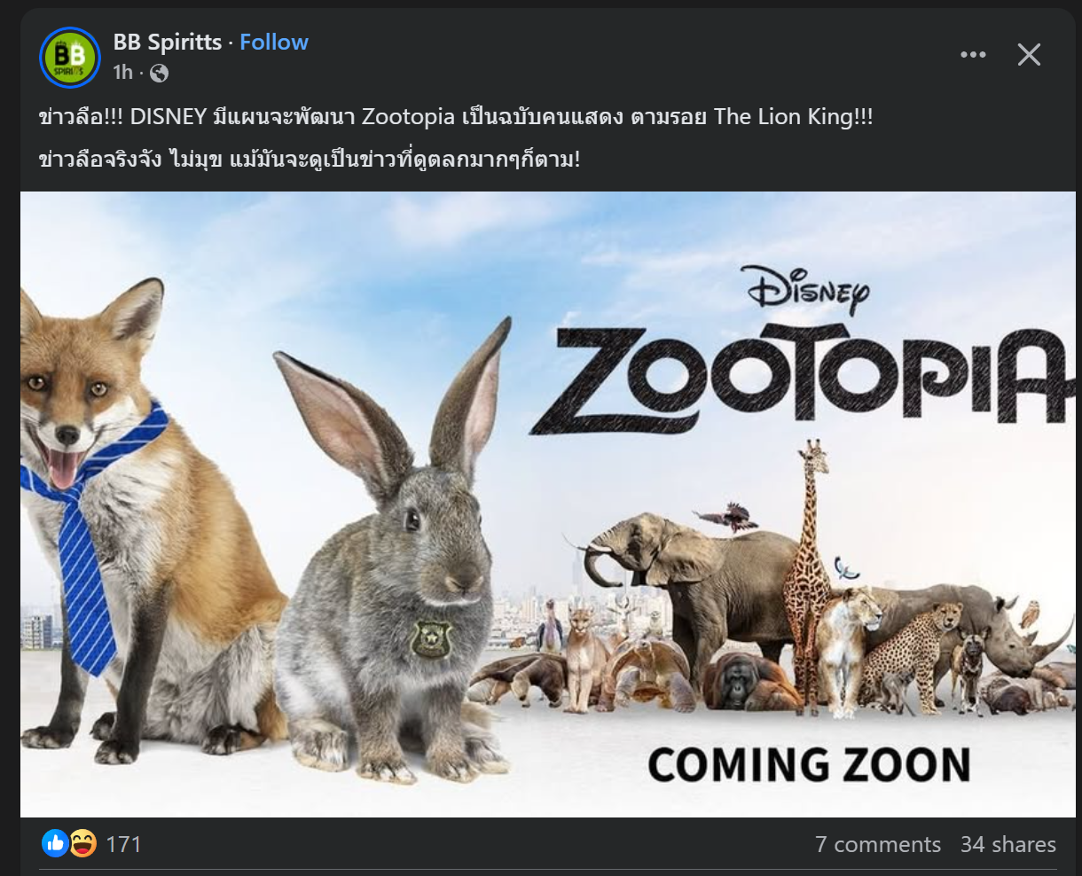 [RE: (ข่าวลือ) DISNEY มีแผนจะพัฒนา Zootopia เป็นฉบับ Live Action]
